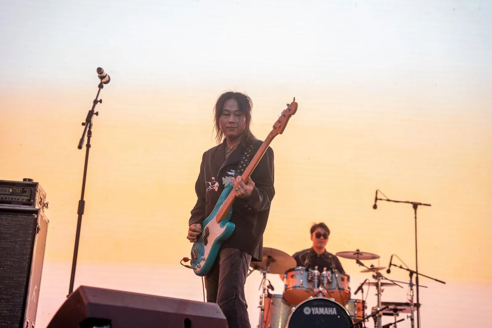 “秘密飞行”从雨声到孤独,尽情享受着舞台的松弛与自然,热烈中绷断的琴弦见证着摇滚力量的飞行速度,摇滚的热浪穿梭于器乐构造的不同时空。