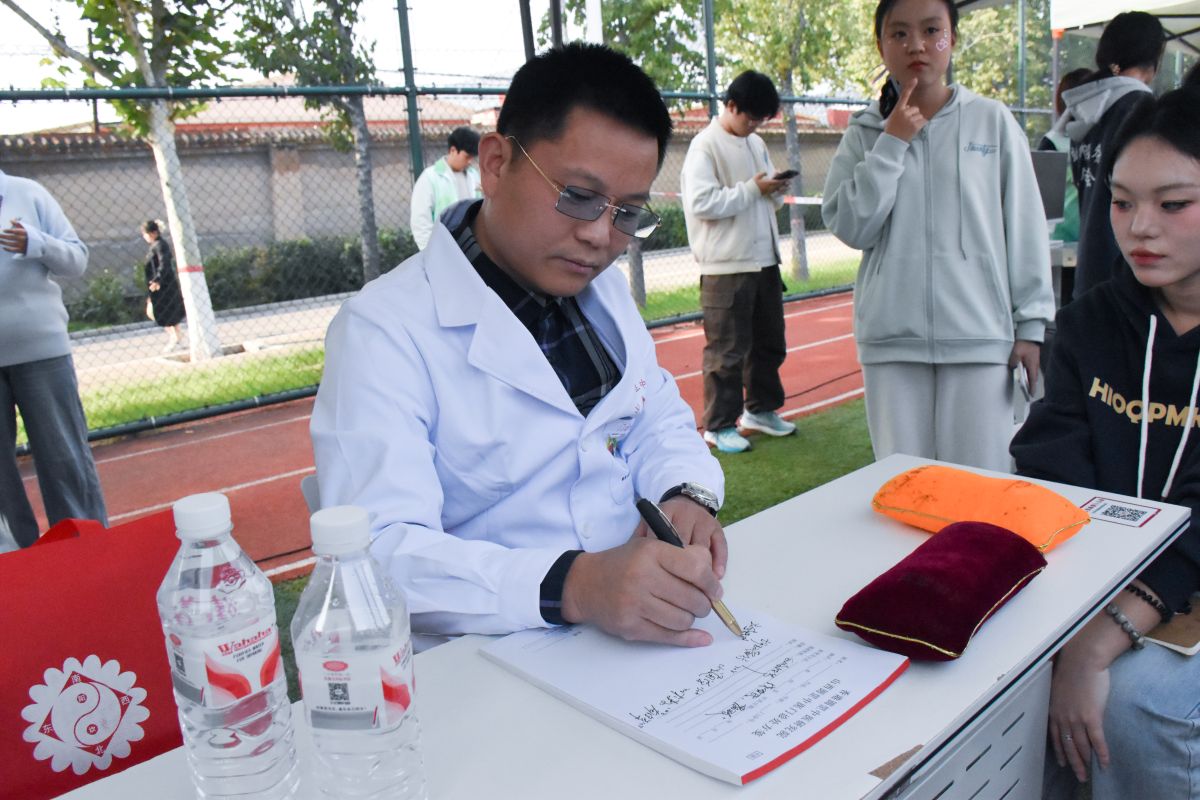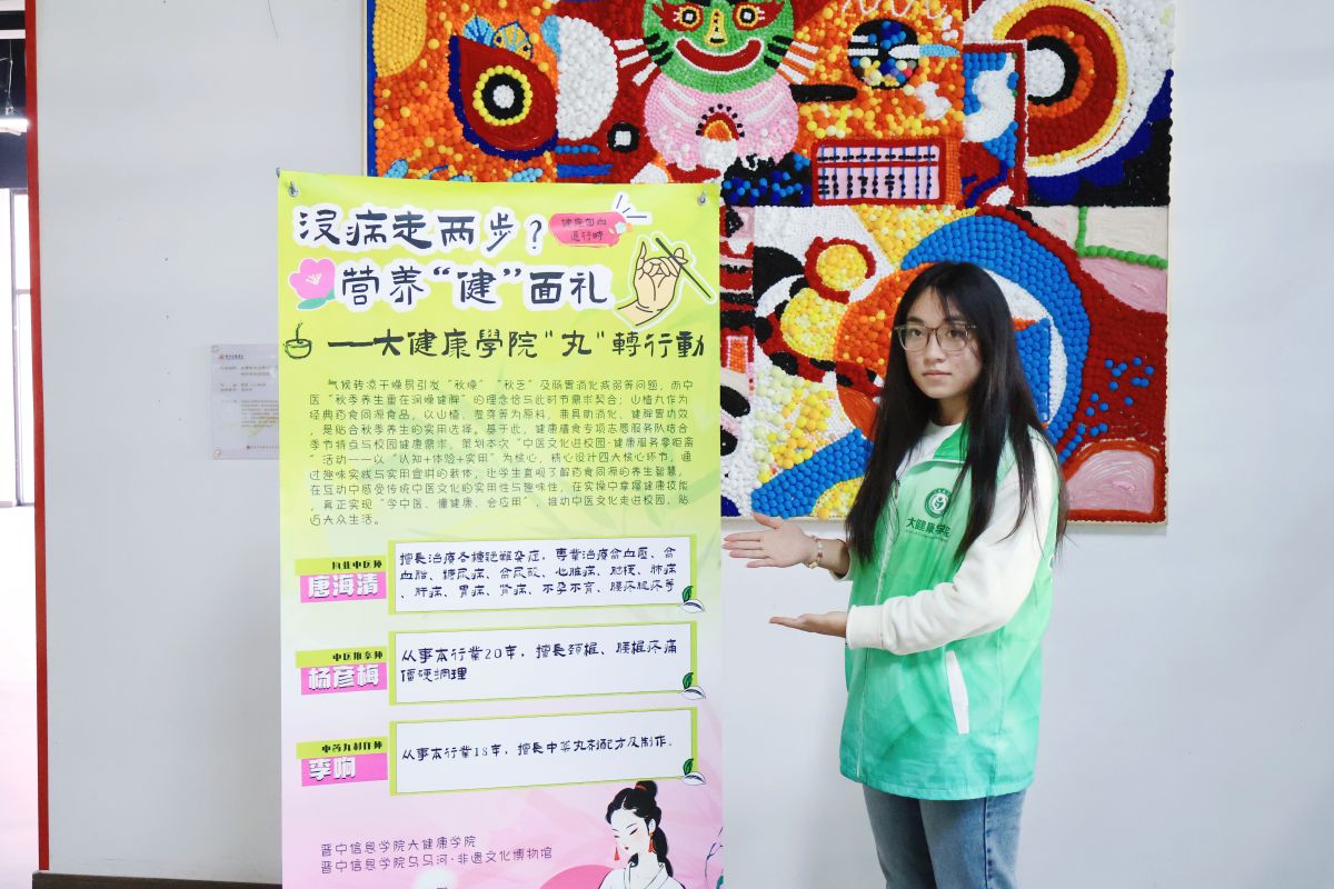 “秋燥暴击”“秋乏缠身”“外卖胃告急”这些问题成了大学生的季节难题,在全面贯彻落实“健康中国2030”规划纲要的背景下,10月15日,大健康学院秒变“养生潮人”聚集地,学院携专业实验设备首次参与活动,我校非遗研究中心的非遗传承人现场展示传统技艺,外加山西圆罡中医义诊团亦倾情参与,实现了大健康专业集群与阿信青年潮流的深度交融,在这场集体验、学习与实践于一体的沉浸式养生活动中,传统养生文化被打造为兼具传统特色与互动性的养生交流平台。