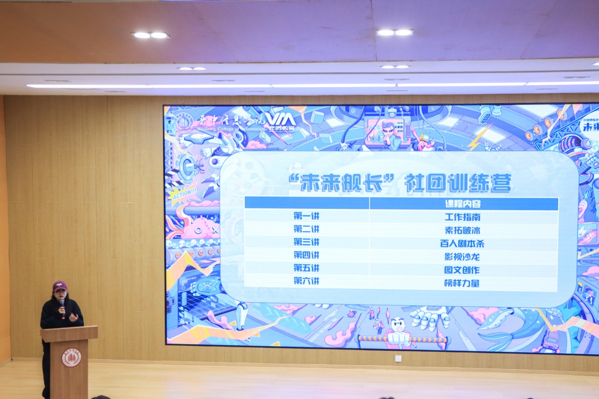 学生社团管理中心刘炫老师围绕工作指南、素拓破冰、百人剧本杀、影视沙龙、图文创作等课程发布说明。她期待社长们能在多元课程中激发灵感、提升能力,也倡导各社团勇于突破活动形式的边界,打造有辨识度的社团特色项目,让社团的“特色”从不是“墨守成规”的结果,而是“敢想敢试”的惊喜。