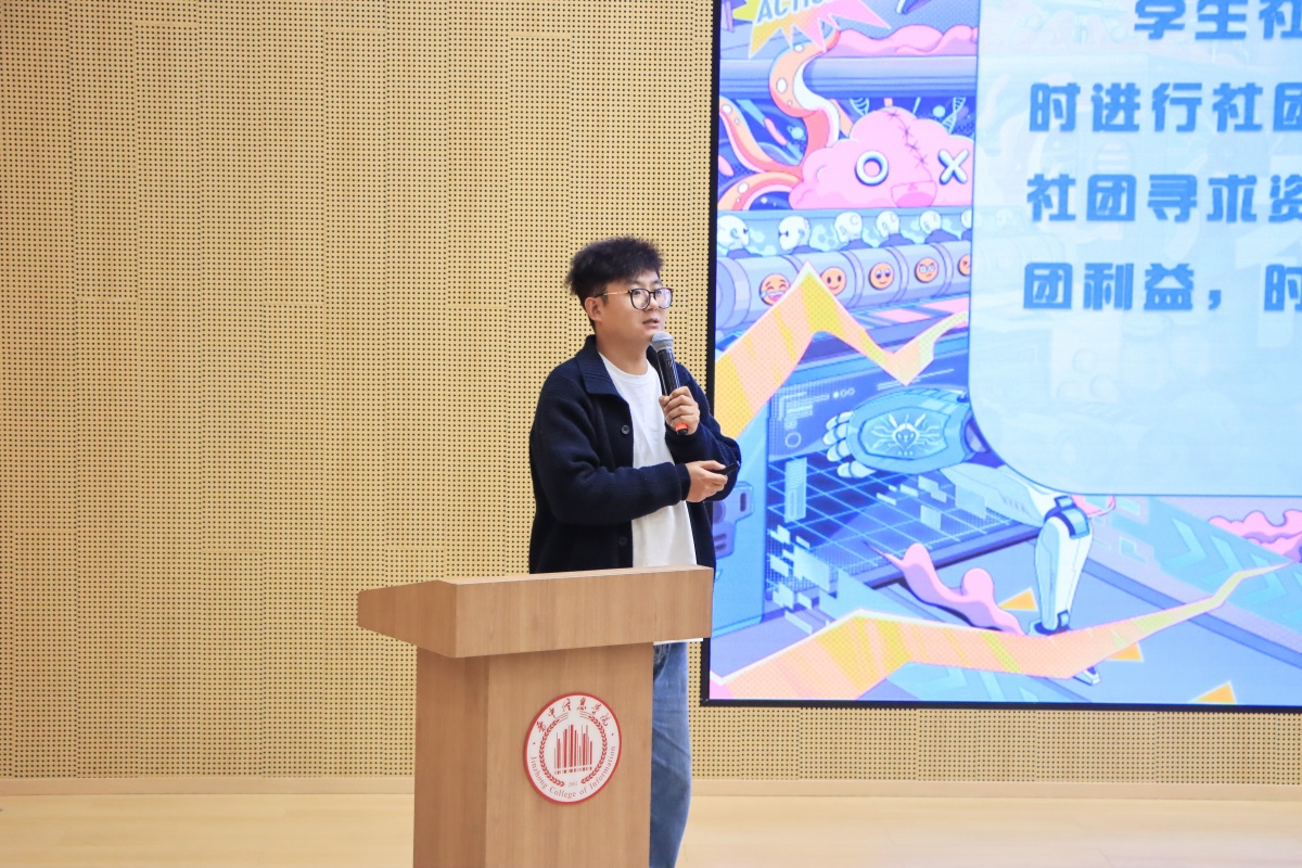 学生社团发展中心指导老师陈曦老师随后进行了系统培训,围绕《社长工作指南》展开深入讲解。从社长职责定位到社团纳新策略,从活动审批流程到宣传规范要求,他的讲解条理清晰,为新任社长们指明了工作方向。“社长的每一个决定都关乎社团发展,每一次付出都在塑造社团文化。”陈曦老师强调,“要始终以服务社员为根本,让每个社团都成为校园里最亮丽的风景线。”