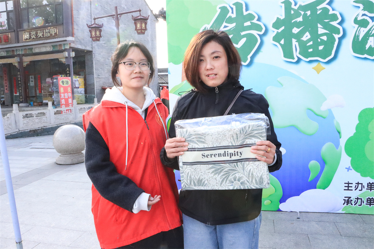 志愿者绘声绘色科普着塑料袋与布袋的真实对比,将两种袋子的环境影响拆解成具象细节,从塑料袋470年的漫长降解周期,到布袋30次使用即可抵消环境成本的关键阈值,那些关于降解时间、循环利用的知识,大家满是专注的探寻目光。“接地气”的对比,让“选布袋、减塑料”的环保认知,悄悄融入每个人的日常抉择里。