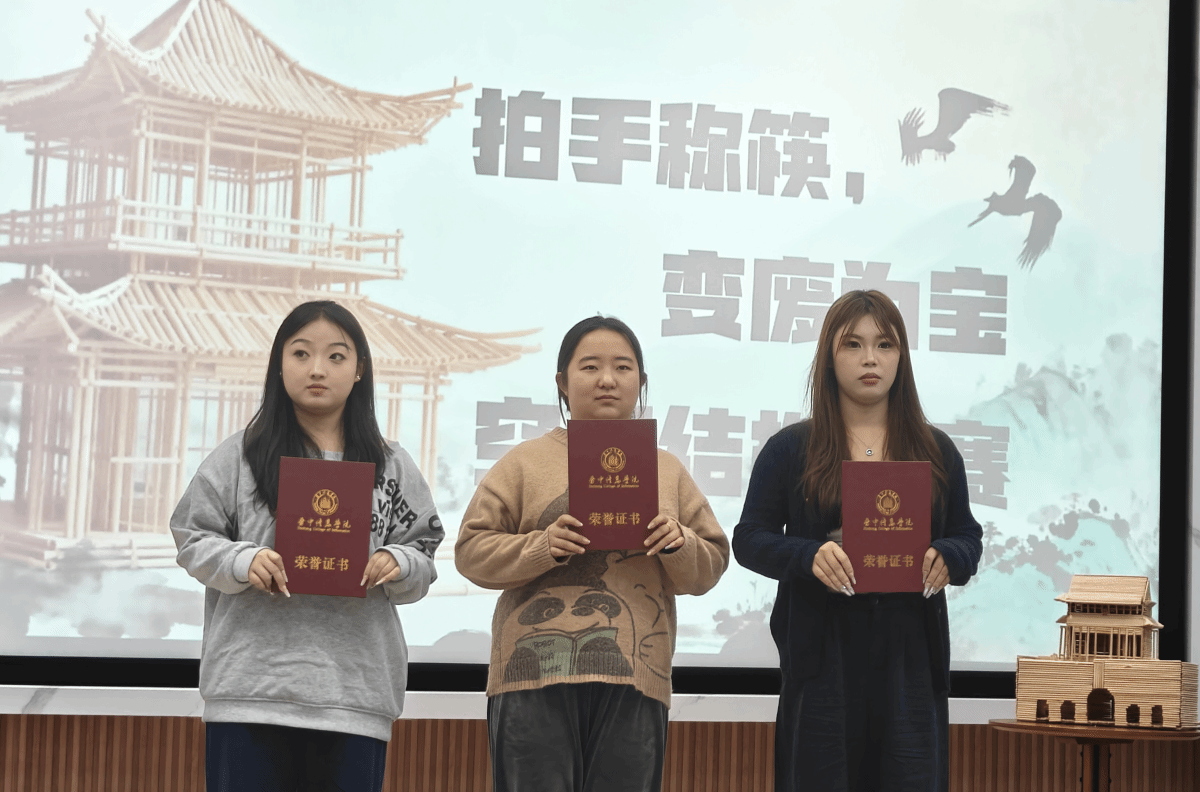 模型搭建与趣味积分激烈角逐后,最“筷”乐的高光时刻终于到来!奖项逐一揭晓,每一份奖状都致敬着团队的巧思与协作。掌声与欢呼声中,废旧筷子重生的意义被彻底点亮——环保不只是理念,更是看得见的创造与荣耀。这一刻,匠心在指尖传承,青春因实践而完满。