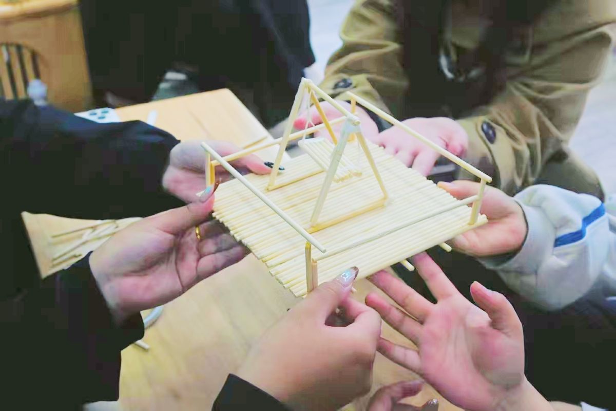 当“开始”指令响起,桌面上的废弃筷子瞬间被注入了灵魂!各小组秒入“建筑师”角色,一场关于结构与美学的极限挑战火热上演。胶水与灵感齐飞,筷子与创意共舞,团队间的高效协作让天马行空的想法稳稳落地。这里不仅是手速的比拼,更是脑洞的狂欢,每一个稳固搭起的结构,都是对“变废为宝”最酷的诠释。