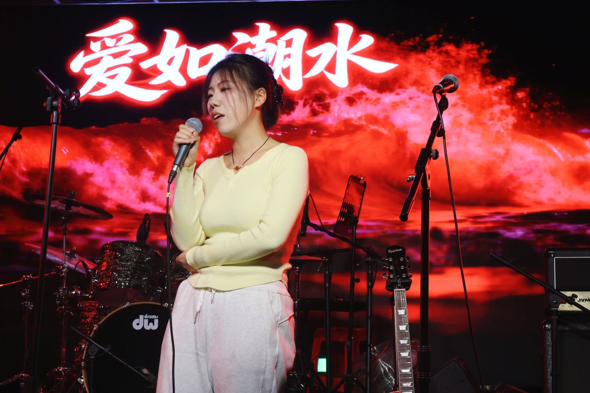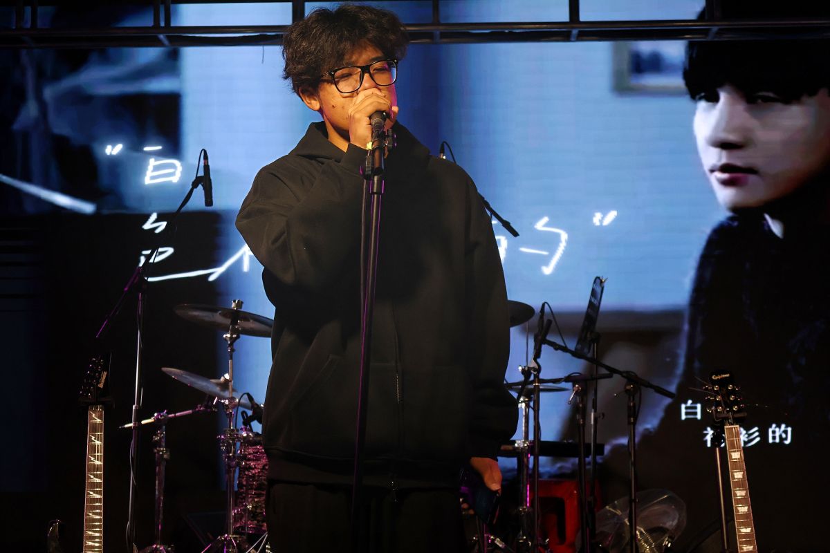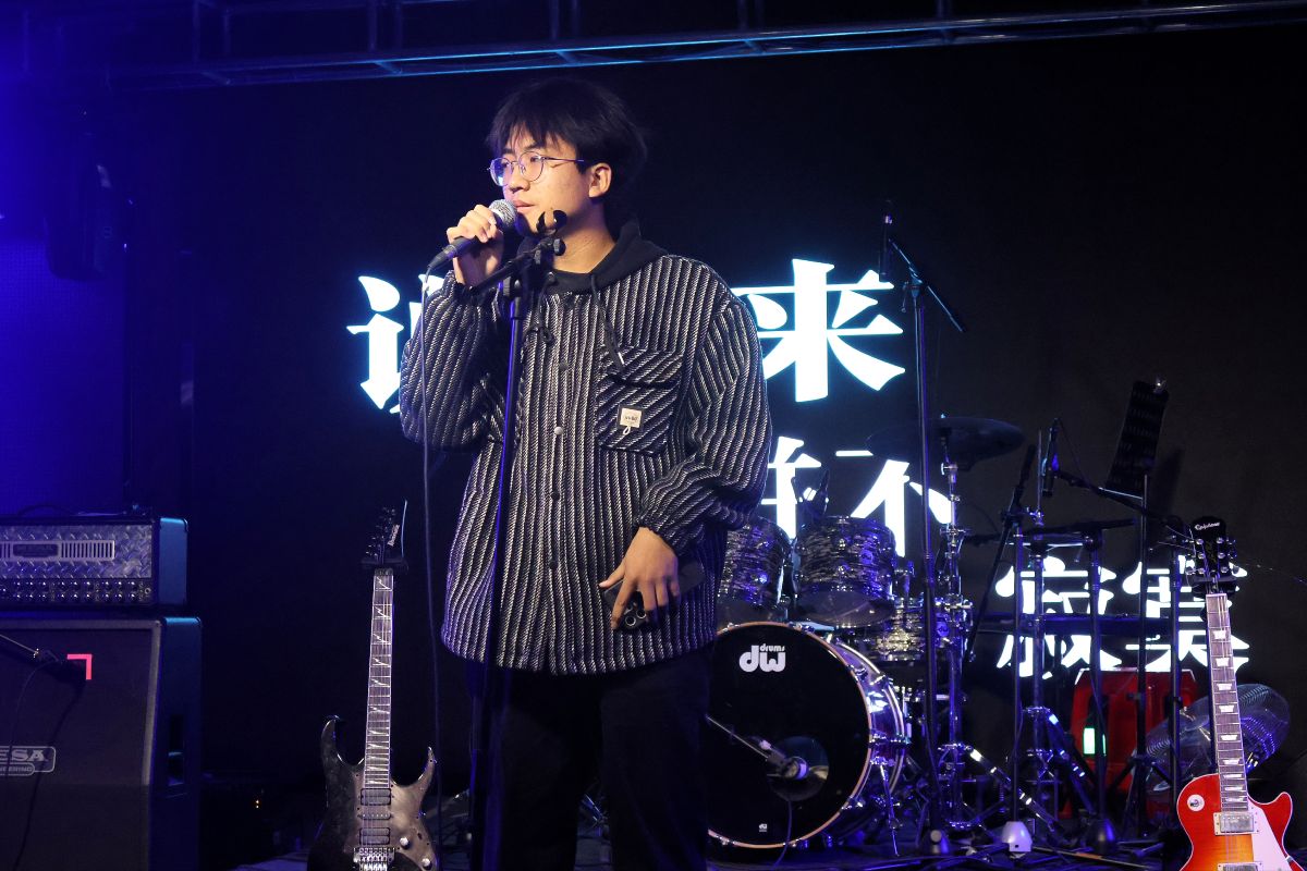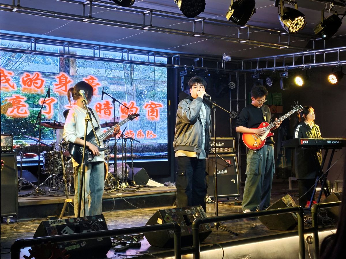 灯光骤暗,特邀鼓浪屿乐队的鼓点率先砸响!强劲的节奏如电流窜遍全场,吉他的嘶吼与贝斯的厚重交织,瞬间将Live House的氛围推至沸腾。原本略带羞涩的新生们,在音浪的裹挟下纷纷起身摇摆,拘谨被彻底击碎,陌生感在旋律中消融——这不仅是一场演出的开场,更是一次青春能量的集中释放,为整场派对奠定了热血狂欢的基调。