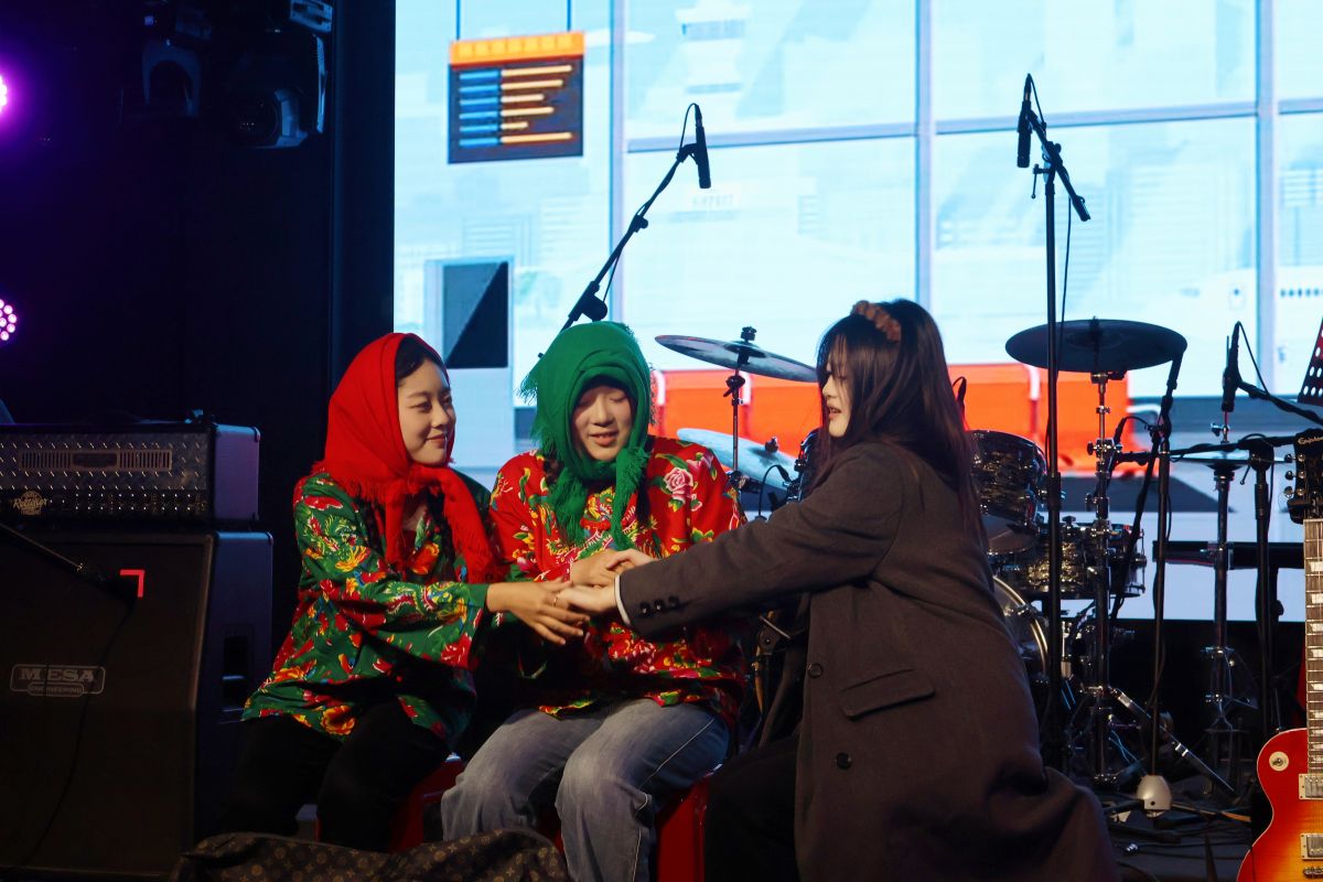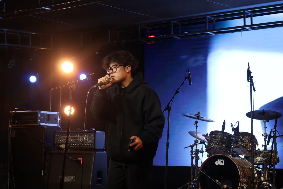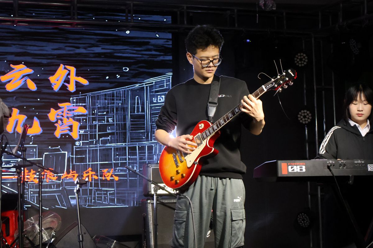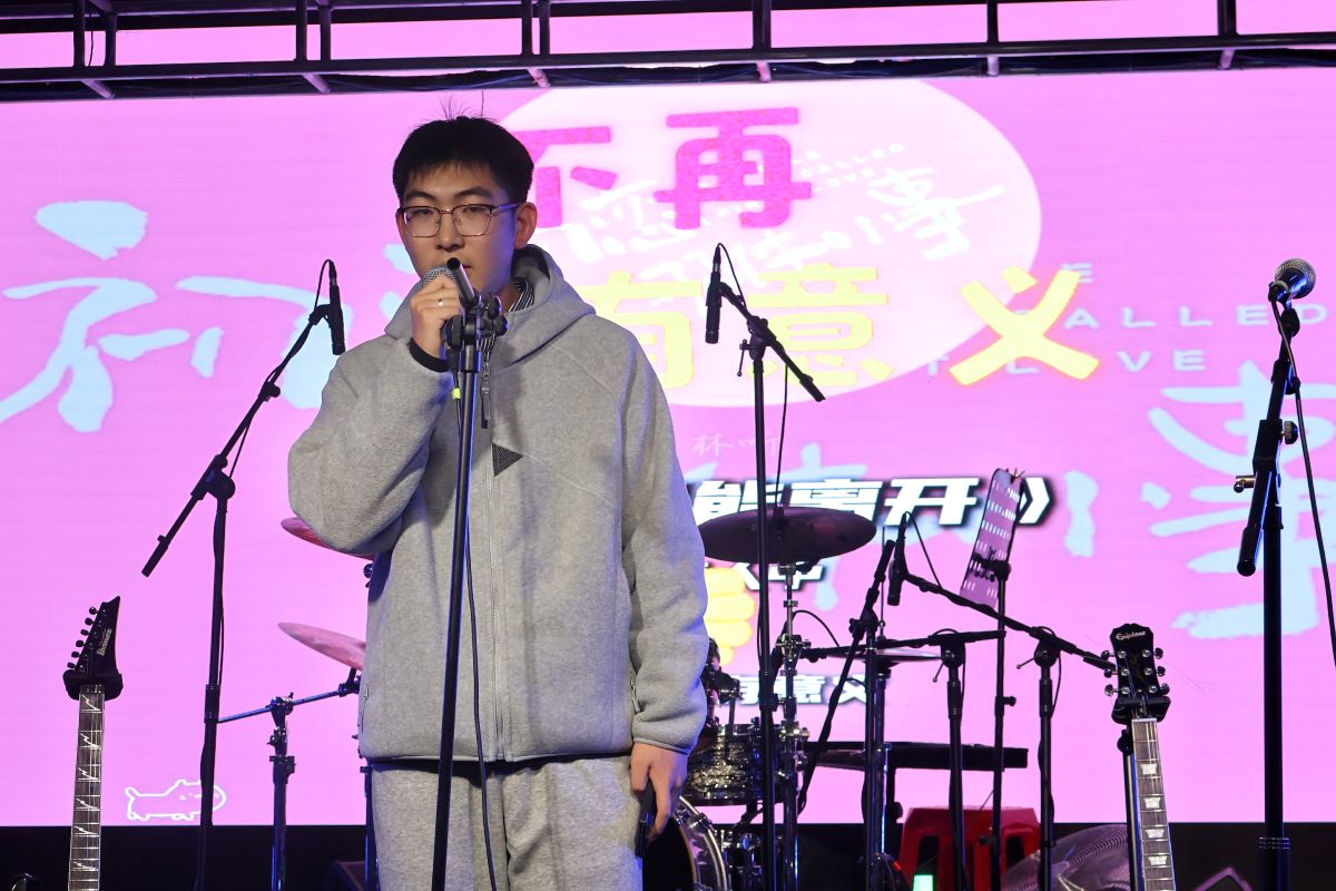 灯光骤暗,特邀鼓浪屿乐队的鼓点率先砸响!强劲的节奏如电流窜遍全场,吉他的嘶吼与贝斯的厚重交织,瞬间将Live House的氛围推至沸腾。原本略带羞涩的新生们,在音浪的裹挟下纷纷起身摇摆,拘谨被彻底击碎,陌生感在旋律中消融——这不仅是一场演出的开场,更是一次青春能量的集中释放,为整场派对奠定了热血狂欢的基调。