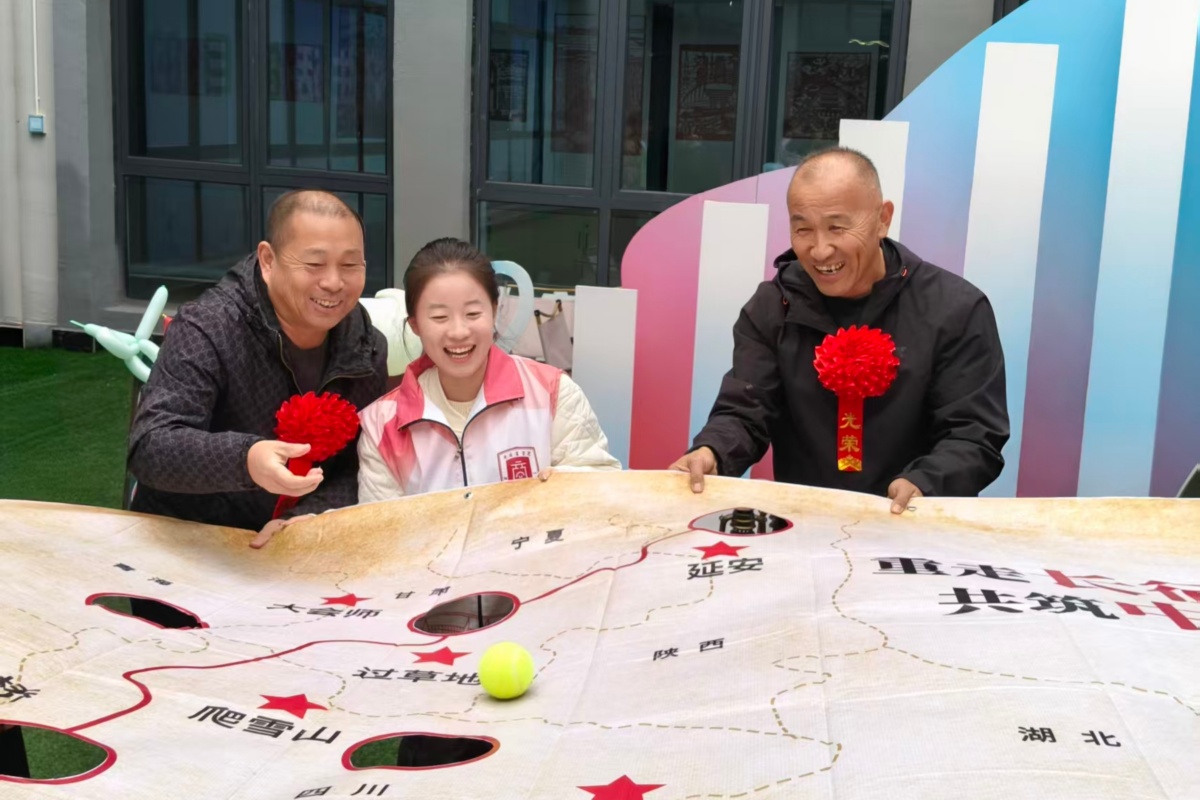 当“叔叔辈”的退伍老兵遇上青春洋溢的大学生志愿者会擦出怎样的火花,一场“编草鞋、打绑腿”活动在校园里火热上演。退伍老兵们化身为“最强导师团”,手把手教大学生志愿者们编草鞋、打绑腿。别看这些叔叔辈的前辈们平时可能有点“严肃脸”,但一上手,那娴熟的技艺简直让人“秒变迷弟迷妹”。而大学生们呢。也从一开始的“手忙脚乱”“状况百出”,到后来逐渐“渐入佳境”,那认真学习的样子,仿佛在说:“我们00后也是很能吃苦的!”这是一次跨越代际的“精神传承”。前辈们用行动告诉年轻人什么是“坚韧不拔”,什么是“艰苦奋斗”。而大学生们也用热情回应着前辈,“重走长征路”小游戏更是玩得热火朝天,志愿者和这群戎光前辈们凑在一张长征路地图前,盯着地图上的红星节点,小心翼翼用球沿着“长征线”往前走,生怕球掉下去“闯关失败”,一来一回间,连紧张感都变成了默契。这场活动让青春与岁月交织出了最美的篇章。