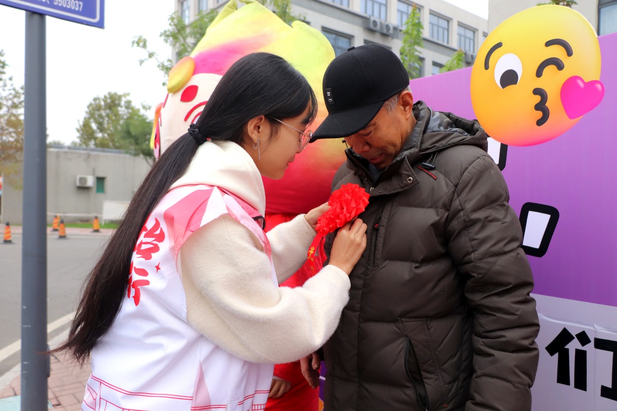 毣谷书院前,时光被悄然重置——上一秒还是记忆里沉静的“岁月纪录片”下一秒便切换为质感十足的“潮流写真”。志愿者为老兵叔叔们胸前别上大红花。他们嘴角一扬、眼神一亮,镜头咔嚓定格的瞬间,妥妥的“戎光顶流”气场全开,没有千篇一律的摆拍,只有发自内心的笑容,连旁边举着相机的同学都忍不住赞叹:“叔叔这状态,比咱们拍照还精神!”这波“岁月里的时髦”哪儿用得着滤镜凑数,笑容里藏着的是跨过时光的坦荡与温暖,这样的画面,看一眼都觉得心里亮堂堂。