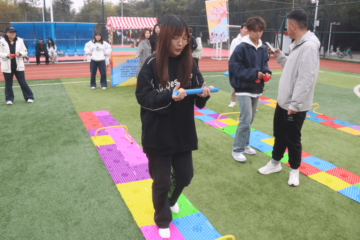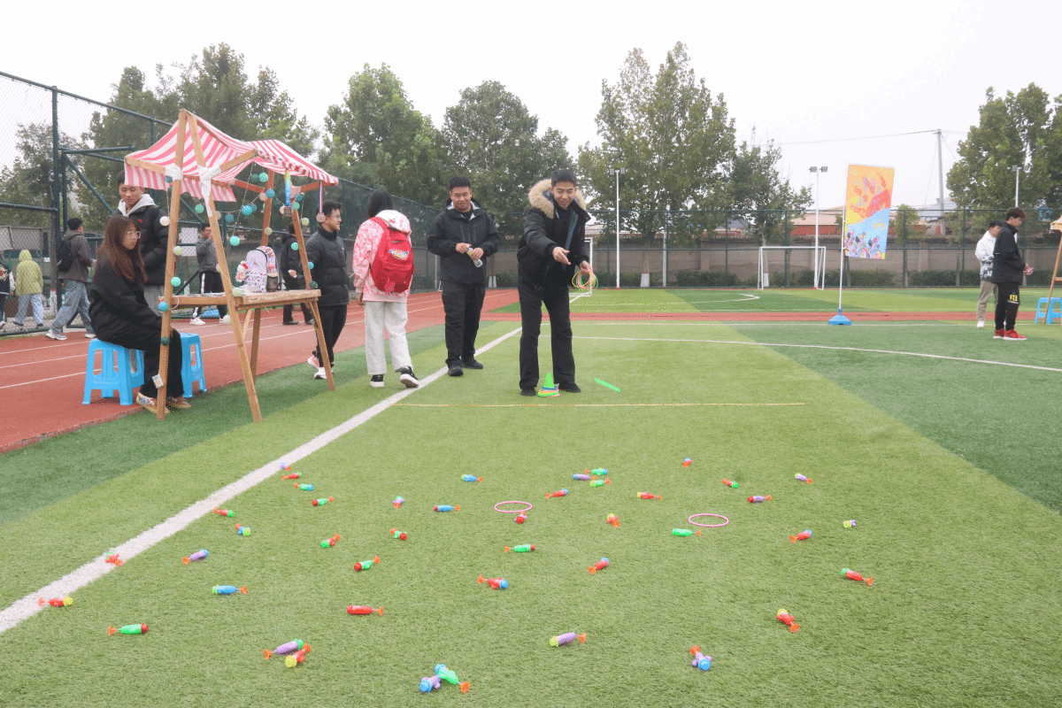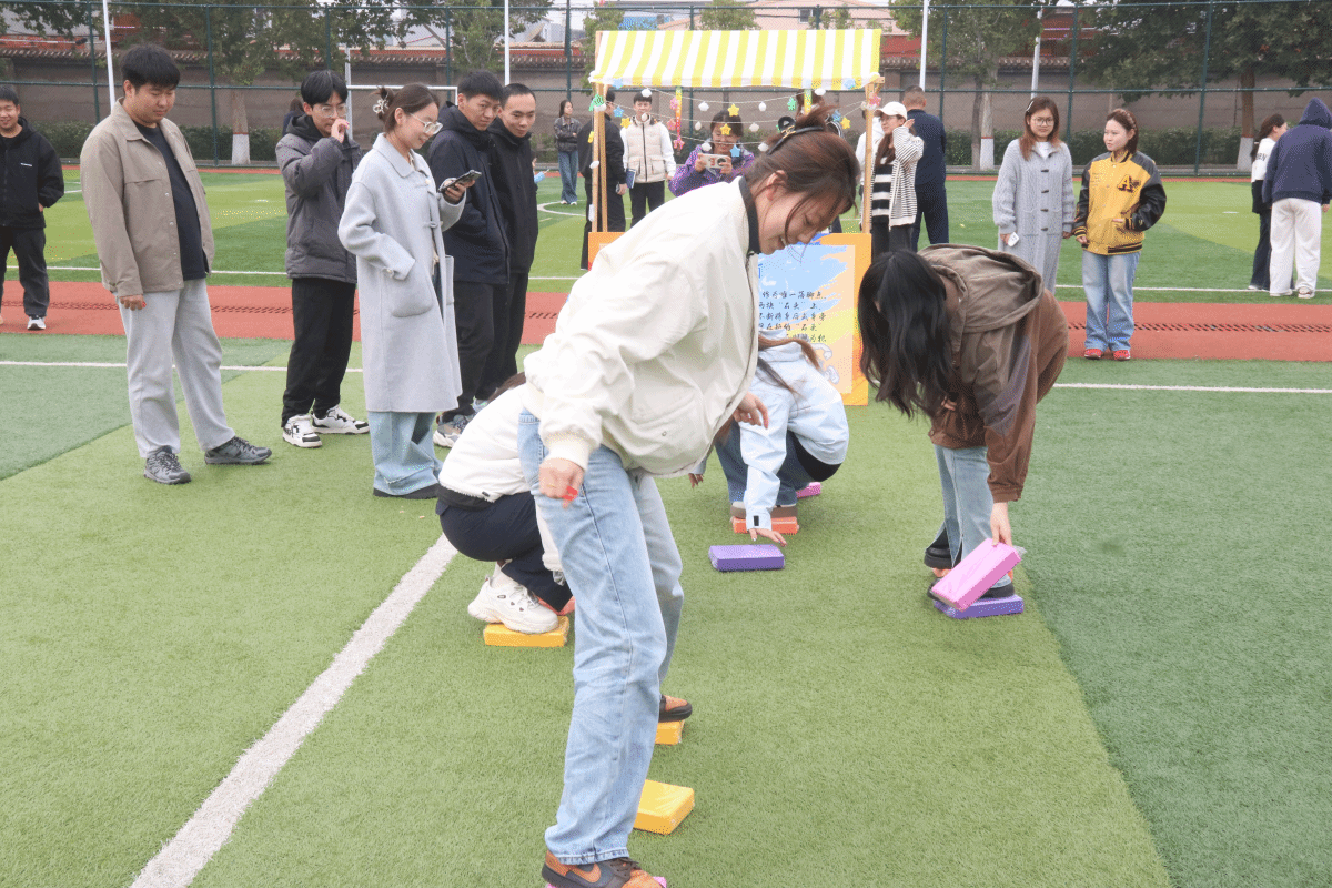 从赛前全员参与的趣味热身律动,到“摸石过河”的稳步协作、“尖叫鸡蒙眼挑战”的爆笑试探,再到“袋鼠跳跳乐”的童趣迸发,六项游戏将现场氛围层层推向高潮。原本陌生的同学因组队闯关褪去拘谨,默契地为彼此支招;单人参赛的同学在围观者的加油声中不断突破自我。每一枚集齐的手环,都镌刻着坚持的印记与收获的喜悦;每一阵爽朗的欢笑,都定格着青春最无拘无束的模样。