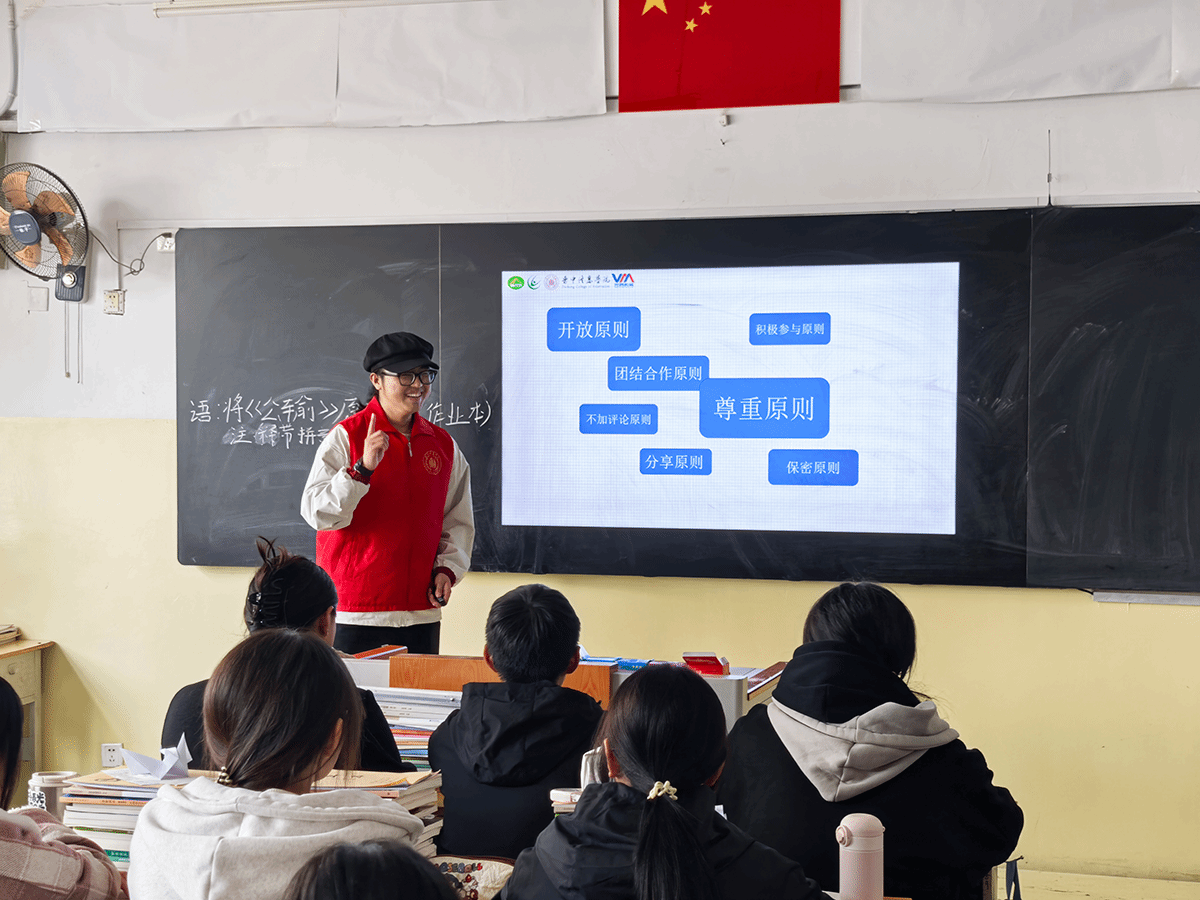 活动伊始,主持人先与同学们建立起互相尊重、积极参与的活动公约。为了调动现场氛围,他没有直接切入知识讲解,而是以4-6人为一组开展小组讨论,围绕“提到艾滋病,你首先想到的是什么”这一话题自由分享。讨论过程中,教室里很快响起热烈的交流声。随后,各小组派代表上台发言,将讨论中提到的关键词写在黑板上,现场很快汇聚了“自尊自爱”“传播性强”“间接感染”等相关的词汇。主持人认真倾听每一位代表的分享,对“艾滋病会通过血液传播”“感染后需及时治疗”等正确观点给予肯定,同时针对“艾滋病患者都生活不检点”“和艾滋病人的毛巾接触也会传染艾滋病”等常见误区,结合真实案例进行耐心纠正,用通俗易懂的语言拆解专业知识,建立科学、客观的认知。
