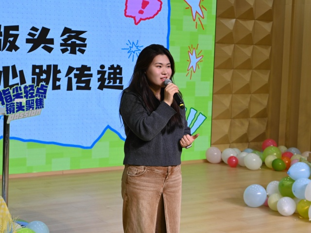 音乐在欢笑中骤然停歇,话筒落在幸运儿手中,“头版头条·心跳传递”游戏正式开启暖心时刻。被幸运选中的“头条人物”们,带着些许羞涩与真诚逐一分享,有人说起第一次独立采访时,因紧张频频忘词,却被受访者耐心鼓励,最终写出的稿件收获师生点赞,让她读懂宣传不仅是记录,更是双向奔赴的温暖;有人回忆深夜改稿时,团队伙伴默默但有力的陪伴,让他明白校媒从不是孤军奋战;还有人分享“翻车”经历,推送错漏信息后,大家连夜核对修正、诚恳致歉,这份直面不足的勇气,是校媒人敬畏宣传责任的底色,更是试错中精进传播、沉淀成长的生动见证。