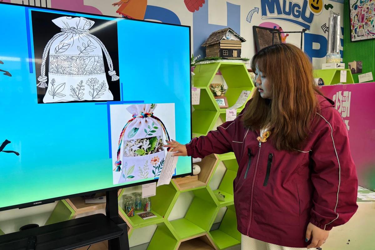 杨欣、王子钰、温少喆三位评委老师围绕主题契合度、创意创新性、功能实用性、答辩表现力四大维度,对作品及成果图细致打分点评。温少喆老师肯定道:“所有作品深度融合健康与环保理念,创意新颖且贴近生活,像‘叶脉饰品’‘桌面垃圾箱’,既藏巧思又传理念,尽显用心与担当。”她同时建议:“秋叶发夹可做封釉或滴胶处理延长留存期,冰箱贴可选用再生环保材质,让环保理念贯穿全程。”杨欣老师总结:“这场秀场不仅是比拼,更是践行健康理念、展现专业素养的平台。希望大家保持热情,让创意作品成为引领健康生活的载体,让健康与环保理念融入更多场景。”