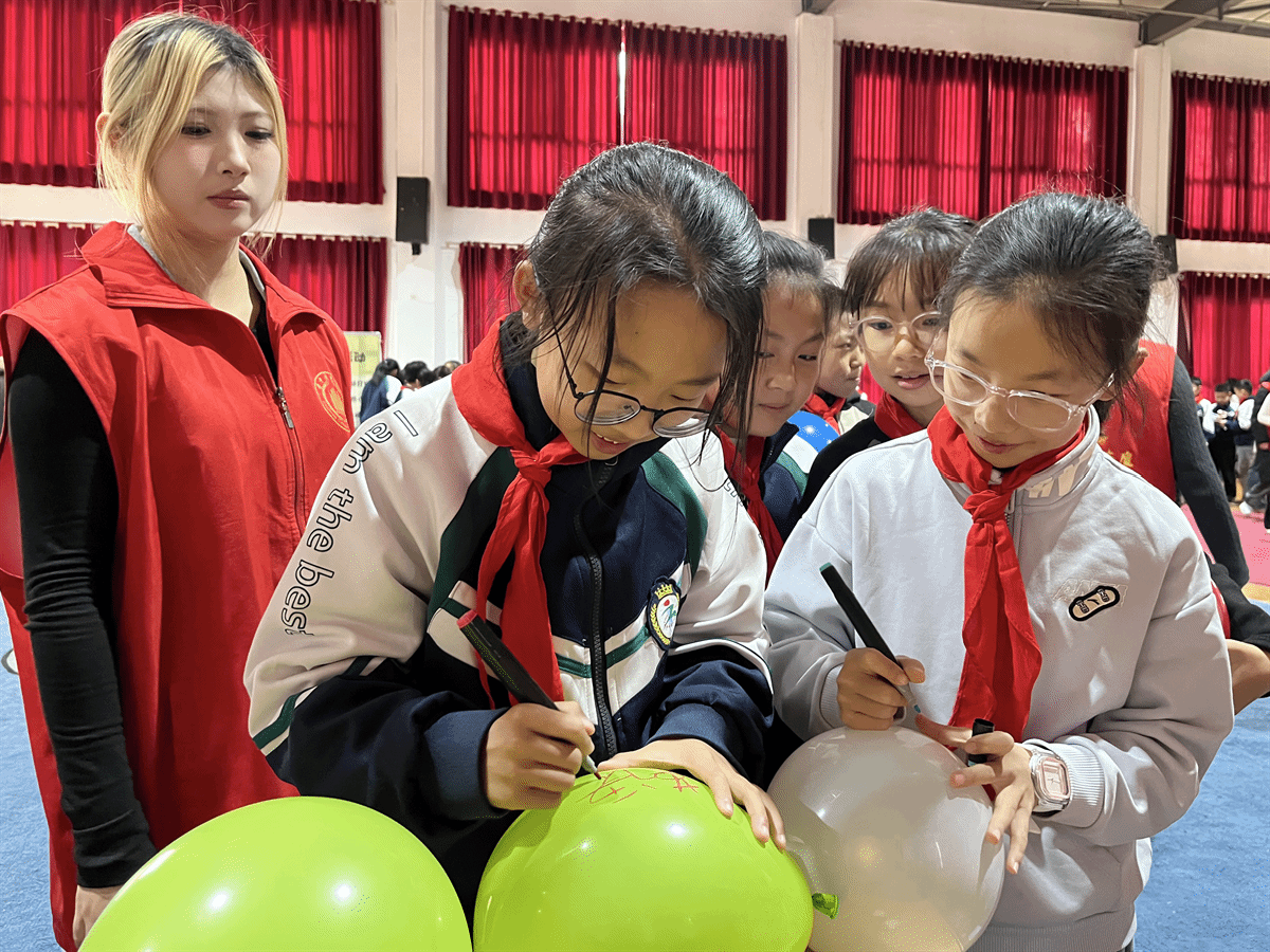 活动结束时,孩子们热闹地分享着收获。有小朋友搂着同伴说:“以后不开心了,我就像今天这样,把烦恼写在气球上,然后踩爆它,把坏情绪都甩掉!”心里的晴天,是可以由自己创造的;成长的光亮,是能够为自己点亮的。