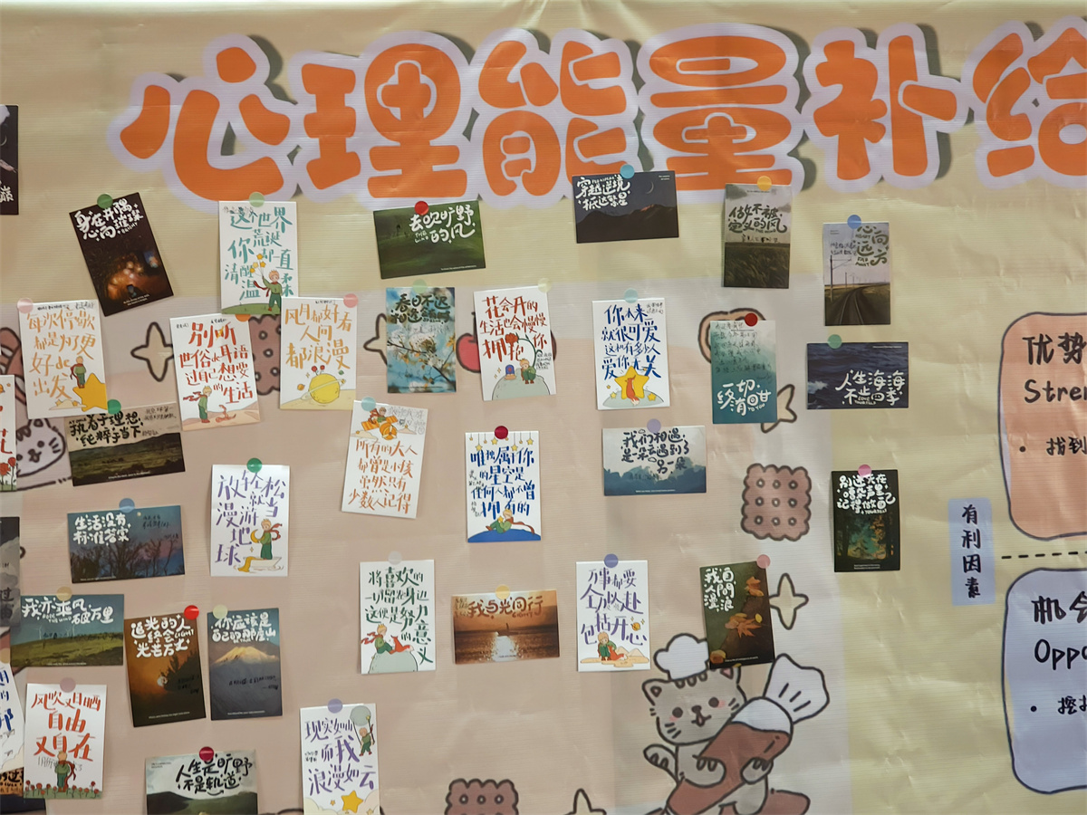 “心理能量补给站”里,暖意静静流淌。便签墙上,一张张便签贴满了孩子们稚嫩却真挚的心意:“感谢妈妈每天送我上学”“感谢志愿者姐姐帮我粘好纸小狗的耳朵”“感谢同桌分享的半块橡皮”,每一句都藏着对生活的细腻感知与纯粹善意。“优势挖掘”卡上,孩子们认真勾选写上自己的优点,细数自己的闪光点,“原来我有这么多厉害的地方!”“未来明信片”上,他们给时光写下约定:“愿你永远保持今日的勇敢”“长大后要做能温暖他人的人”,字句间满是对未来的憧憬与期许。