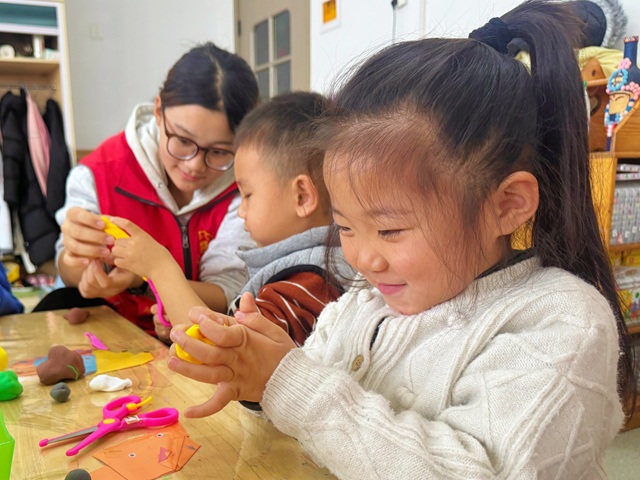 指尖翻飞间,一个个独特的“诚信书签”逐渐成型:穿背带裤的小朋友捏完人参,举着书签对志愿者喊:“我的人参会帮我‘说话算数’!”还有孩子给甘草粘了颗红脸蛋:“它知错啦,以后会守约的!”还有的将甘草与人参粘在一起,诠释“约定与包容的力量”。小小的粘土作品里,藏着孩子们对“诚信”最柔软的理解。每一件作品都承载着孩子们对诚信的独特理解,成为可触摸、可珍藏的文化信物,让抽象的美德有了具体的模样。