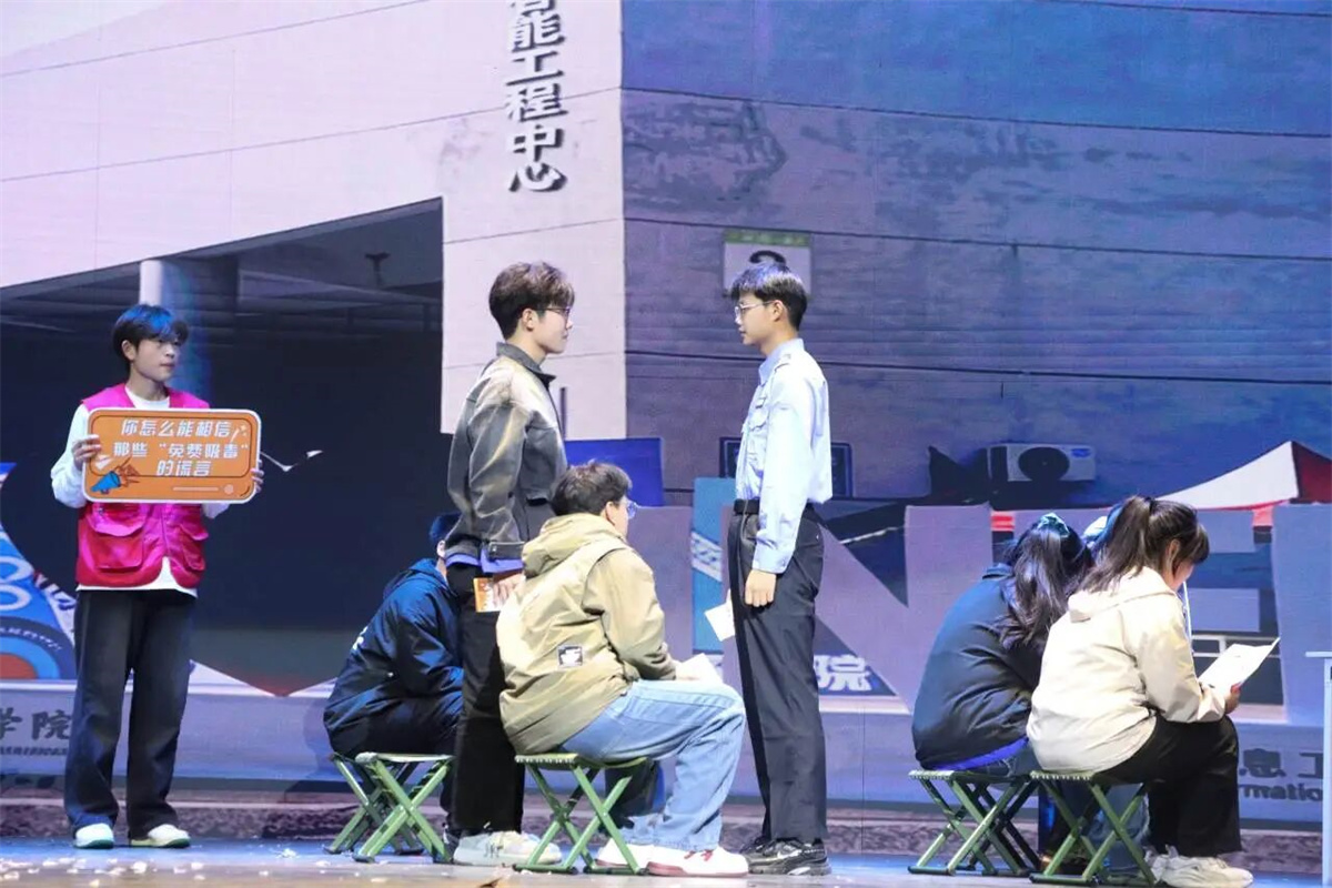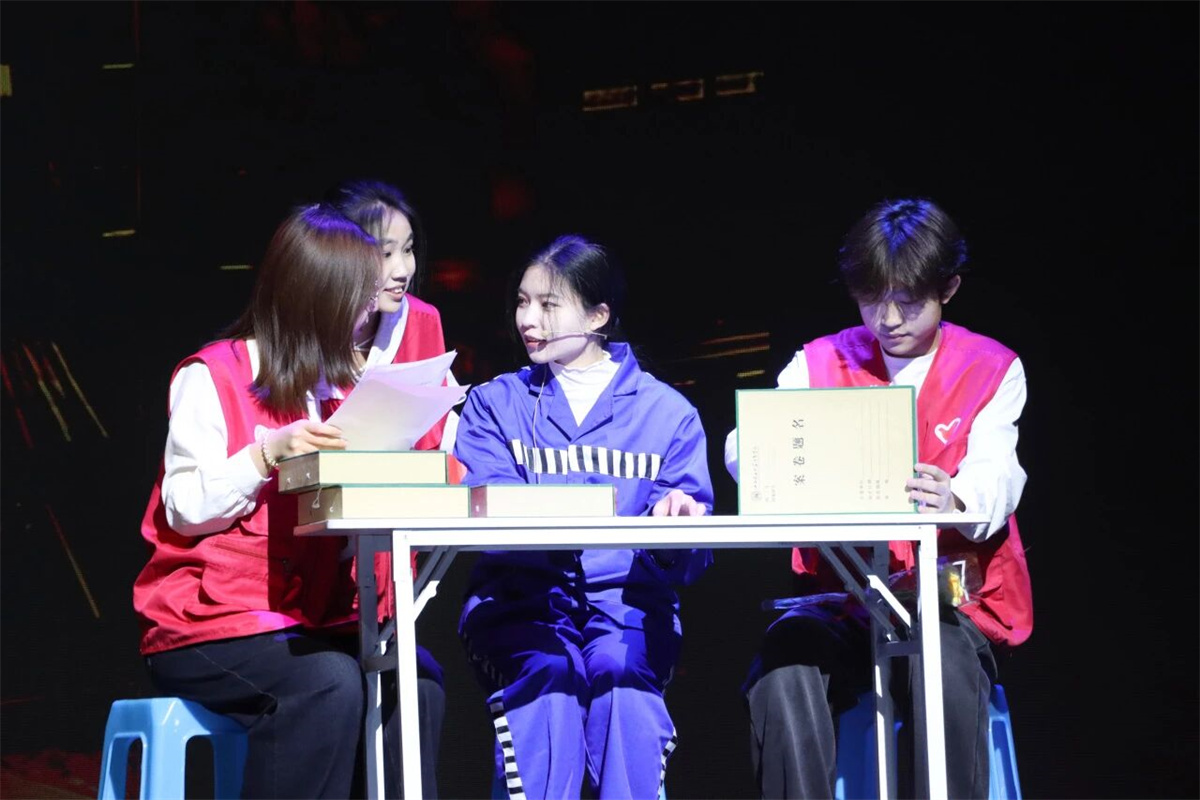 信息工程学院志愿者们,以“声情叙事+情境微雕”创新形式,讲述禁毒路上的陪伴与担当,戒毒者张红在志愿者与社工陪伴下的挣扎与新生。“平安苹果”的温情寄托,缉毒警察的逆行冲锋、校园禁毒的科普,一场场从迷途到新生的救赎,诠释了“青春无悔!中国禁毒!寸土不让!”的誓言,传递出禁毒“同行者”的磅礴力量与青年责任。