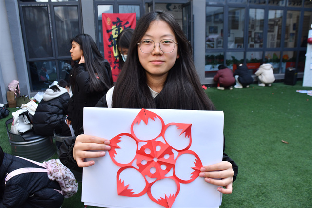 咔嚓咔嚓——剪纸区的红纸在指尖“变身”幻化出精美的福字、灵动的祥龙、可爱的小兔……完成的作品不仅是艺术品,更是绝佳的拍照道具,原来非遗不仅可以很传统,也可以很“潮”、很“治愈”!