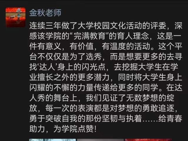 它承接社团所培育的热爱,将其引向一个被注视、被聆听的现场;它让零散的微光彼此照见,形成一片光亮的空间。在这里,“敢梦敢秀”并非空泛的口号,而是化为真实的掌声与目光。它让每一次“我”的登场,最终都融入一段“我们”共同的记忆。