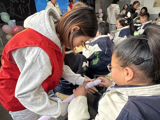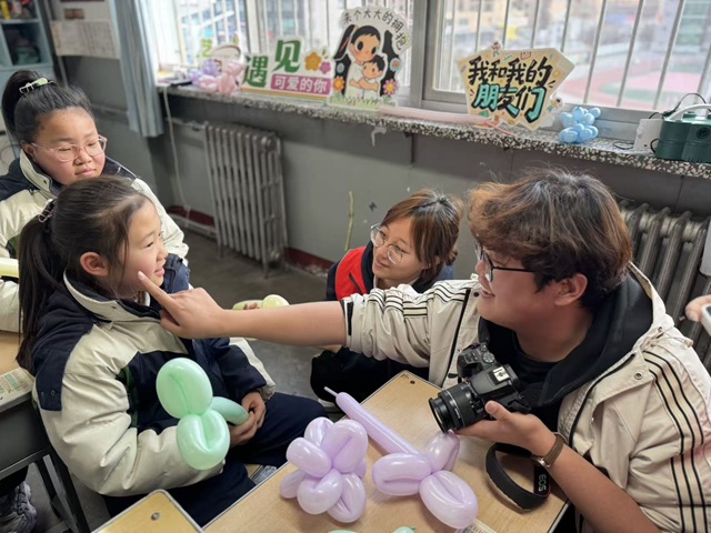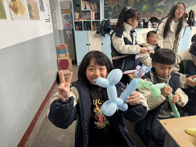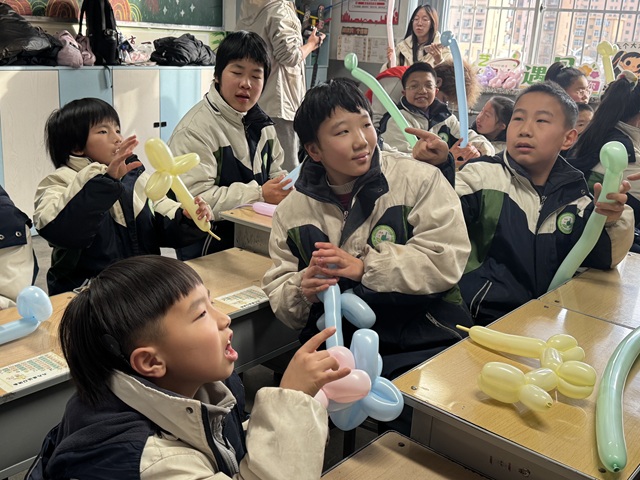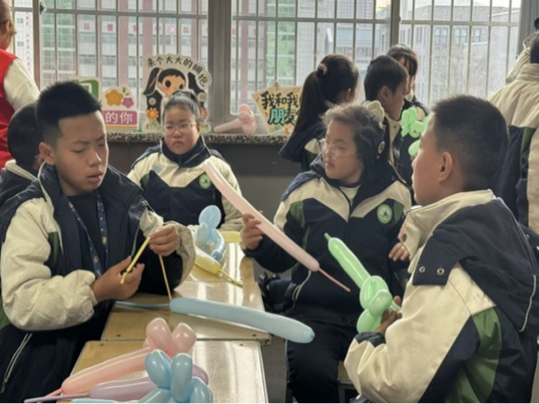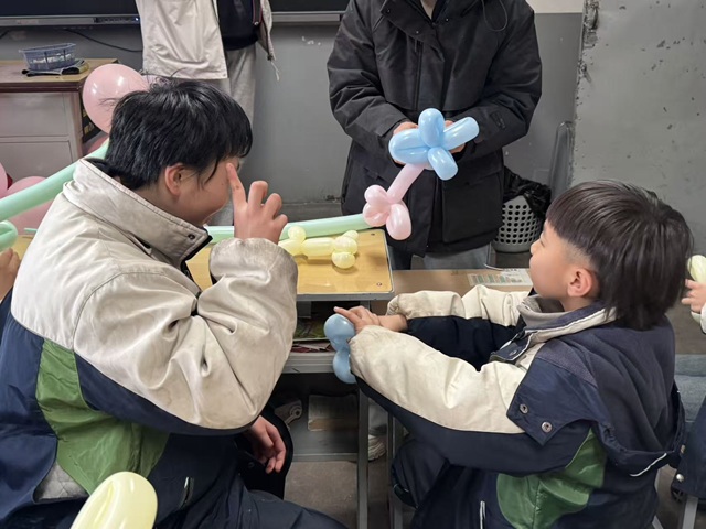 指尖翻转的气球,在特殊教育学校孩子们的手中变成了灵动的小狗与小熊。没有语言的交流,眼神与笑容便是最好的桥梁。当孩子们捧着成型的气球,小心翼翼地摩挲着,眼里闪烁着雀跃的光芒,我忽然懂得,陪伴无需千言万语。