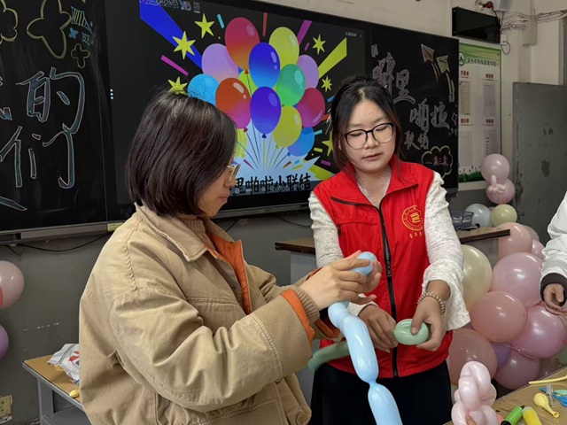 彩色的气球在指尖流转,被折成憨态可掬的小狗与小熊,送到特殊教育学校孩子们的手中。没有言语的互动,却能从他们亮晶晶的眼眸里,读懂满溢的欢喜。这群无法聆听世界声音的孩子,用最纯粹的笑容回应着这份简单的快乐。看着他们小心翼翼地捧着气球,互相展示的模样,我深切体会到,志愿的温暖从不在声势浩大,而在真诚的陪伴与分享。这短短一段时光,不仅是我赠予他们的礼物,更是他们回馈我,最珍贵的成长印记。