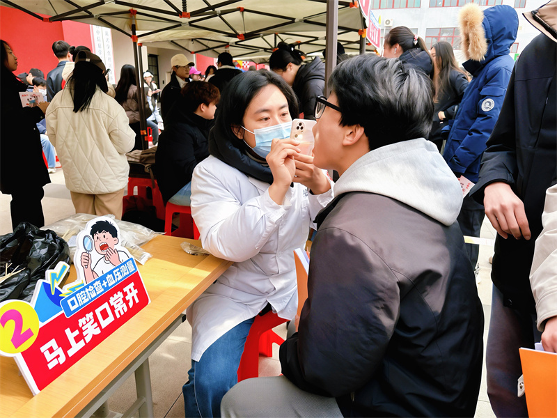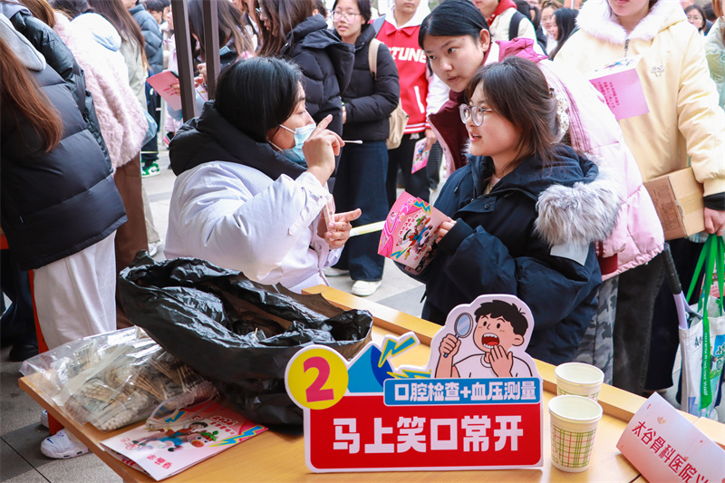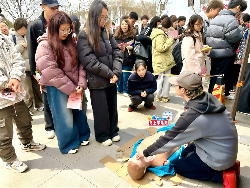 走进“马上‘做’个志愿者”的活动现场,12个创意摊位一字排开,乍看像是热闹的游园集市,细细品味发现每一个“有意思”的背后,都藏着“有意义”的志愿巧思。“马上‘没毛病’”摊位前排起长队,同学们在中医义诊的号脉问诊间,不仅体验到传统文化的魅力,更在志愿者的叮嘱中读懂了“治未病”的健康智慧;“马上学急救”摊位前,参与者轮流在模拟人身上练习心肺复苏,每一次按压的节奏掌握,都是一次生命意识的觉醒,欢声笑语中悄然练就了关键时刻能救命的真本领;“马上养生”的摊位前,同学们亲手搭配艾叶、老姜,将温暖装进布袋,这份亲手制作的礼物,既是对传统养生文化的体验,更是一份对身体康健的守护。现场还设立了“马上修BUG”“马上捐爱”“马上低碳”“马上‘剪’‘压’”“马上拍照”等互动内容,涵盖学生在校日常需求的方方面面,让每一位参与其中的学生都能感受到志愿服务触手可及的温暖与别样魅力。