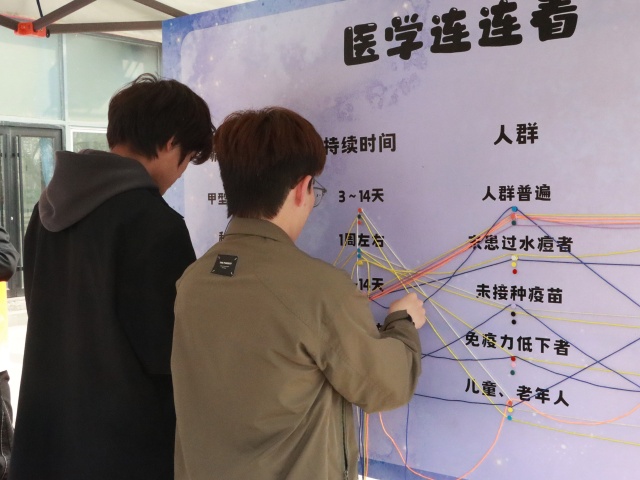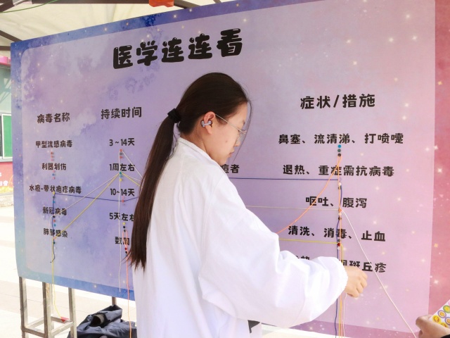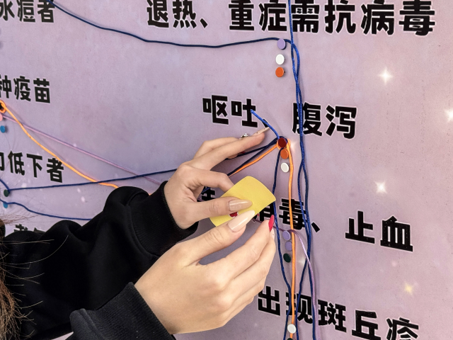 知识巅峰赛环节中,急救常识、突发状况处理技巧等题目轮番出现,让大家在紧张欢乐的比拼中,快速积累了实用急救干货。同学们化身医疗知识小达人,眼神专注地扫视板块内容,大脑飞速运转检索知识点,手指灵活地完成连线比拼。每一次正确连线都是对自身知识储备的肯定,这让大家在探索中悄悄夯实了基础医疗认知,解锁到了更多实用的医疗小常识。
