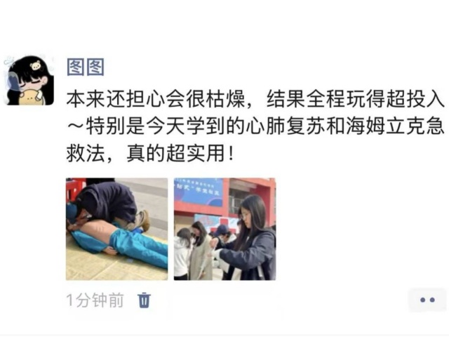 “本来还担心会很枯燥,结果全程玩得超投入。特别是今天学到的心肺复苏和海姆立克急救法,真的超实用!”信息工程学院一学生感叹道。