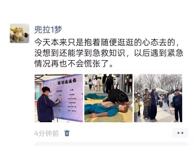 淬炼商学院·国际商学院一学生说:“今天本来只是抱着随便逛逛的心态去的,没想到还能学到急救知识,以后遇到紧急情况再也不会慌张了。”