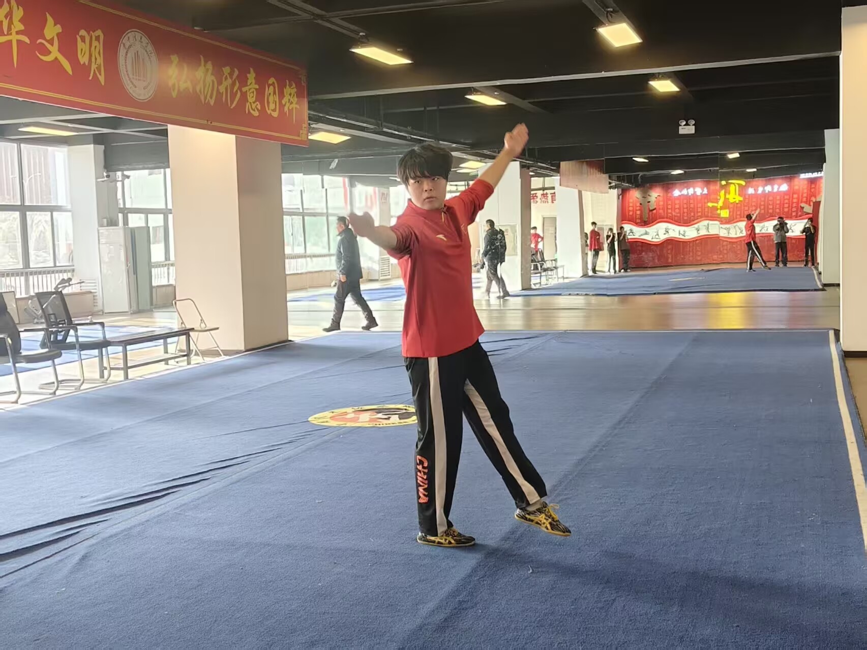 可偏偏,最苦的日子里,笑也是最多的。校武术队中的伙伴们互相鼓励、打闹嬉笑,让枯燥的训练多了许多暖意:训练间隙的相互鼓励,疲惫时刻的嬉笑打趣,让难熬的时光变得轻松鲜活。正是这份彼此扶持,让他在最疲惫的时候也没有想过放弃。而学校形意拳中心那扇永远为他们亮着的门,也成了他最安心的去处——在这里,热爱不会被辜负,努力总有人看见。