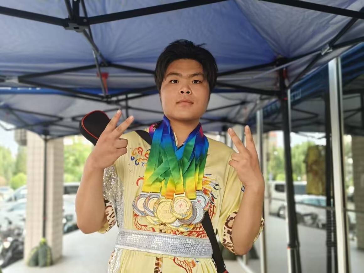 学校搭建的平台,让这份成长有了更广阔的施展天地。从训练垫上站不稳马步的少年,到赛场之上从容施展招式的武者;从怯于开口的“闷葫芦”,到能在会议中自信表达的青年,他的每一步成长皆有迹可循。那些训练垫上磨破的鞋底,书桌前趴睡的夜晚,队友搀扶时掌心的温度,这些平凡的瞬间,一块块筑就了如今的他。