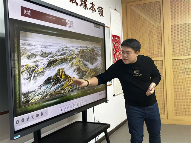 本次研学活动最受期待的环节,当属非遗传承人李泽莹的现场授课。课堂上,李泽莹老师不仅深入浅出地讲解花丝珐琅“掐丝、点蓝、烧蓝、打磨”等核心技艺的历史渊源,更以实操演示的方式,手把手指导同学们进行珐琅彩调色创作。从金丝的细微弯折到颜料的精准调配,从图案的轮廓勾勒到色彩的层次晕染,同学们屏气凝神,在一捏一填、一笔一画间,亲身触摸非遗技艺的细腻质感,感受传统工匠“慢工出细活”的坚守与执着。