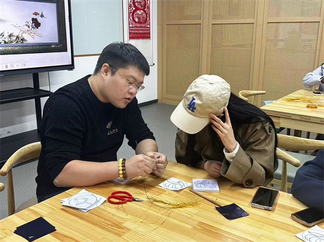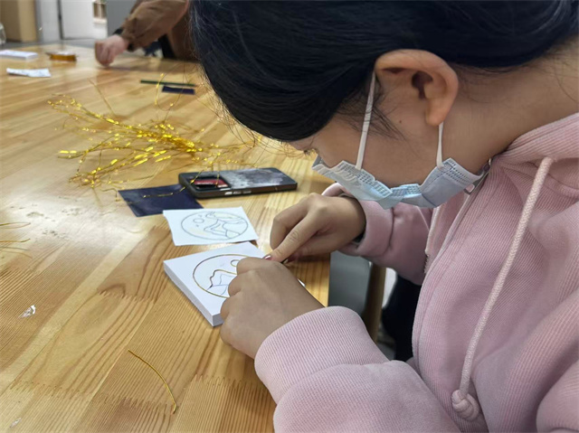 “以前只在书本上见过花丝珐琅作品,今天亲手尝试调色创作,才真切体会到这项技艺的精妙。尤其是将非遗馆里的花卉图案融入作品时,仿佛和本土文化有了更亲密的连接。”