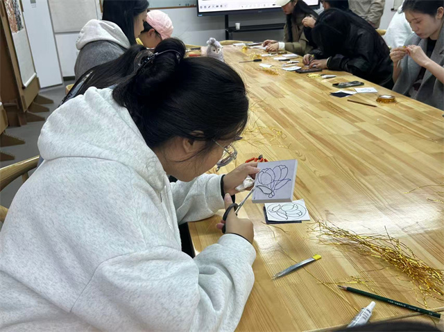 花丝珐琅,这项被誉为“燕京八绝”之一的传统技艺,以金丝盘曲、点蓝填彩的独特工艺承载着千年文化底蕴。然而在当代,其面临着大众认知度不足、传承断层的现实挑战。此次活动正是以乌马河非物质文化遗产馆的馆藏资源为纽带,将馆内珍藏的花卉、神兽等地域文化图案作为创作素材,让古老的非遗技艺与鲜活的校园文化实现深度碰撞。