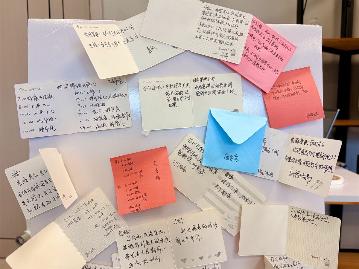 随后,大家将便签贴至目标墙,多彩便签汇聚成墙,似是为成长之旅插上了规划的翅膀,正式拉开自我时间管理的帷幕。