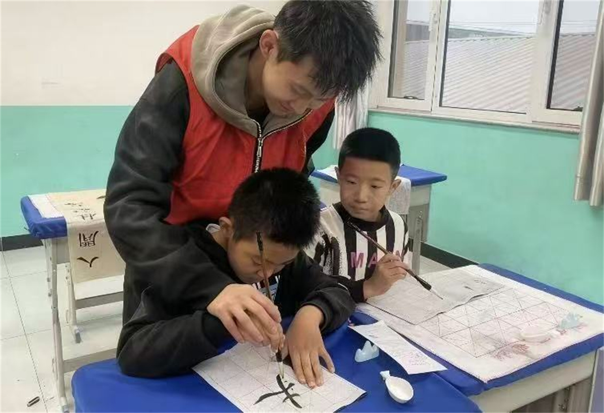 光透过教室的玻璃窗,在摊开的米字格宣纸上织就浅浅光影,风一吹便轻轻晃。志愿者们早早把案头收拾利落,砚台里新研的墨汁泛着温润光泽,闻着有股淡淡的墨香,兼毫笔静静斜倚在笔架上,笔毛还带着点湿润,笔尖凝着细碎墨痕,等候着与孩子们的第二次墨缘。