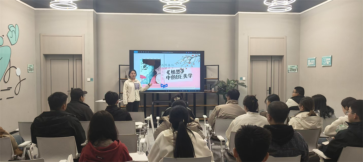 作为专赴《相思》之约的沙龙,主讲人领着大家钻进古典诗词的褶皱里,拆解《相思》藏着的遗憾小秘密,那些未说尽的情愫、未圆满的结局,都在生动解读中变得鲜活可感。在诗词的韵律与影像的画面交织互动中,大家循着字里行间的线索,探寻古典文学里的情感微光,让跨越千年的相思与怅惘,化作当下的深刻共鸣。这场小而美的沙龙,不仅让学子们近距离触摸到古典文学的魅力,更给校园文化添了份清新鲜活的文学气息,为丰富多元的校园文化活动,注入了温润而持久的文学新活力。