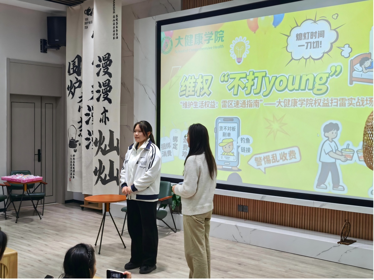 此次权益扫雷实战场活动,不仅让大健康学院的同学们精准吃透了四大高频权益“雷区”的应对技巧,更在心底种下了“主动维权”的种子。通过搭建经验共享的交流平台,学院成功推动学子从“遇到问题被动吃亏”转向“提前避坑、主动维权”,为他们今后应对校园乃至社会中的权益问题筑牢根基,也为营造安全、有序的校园生活环境添上了关键一笔。