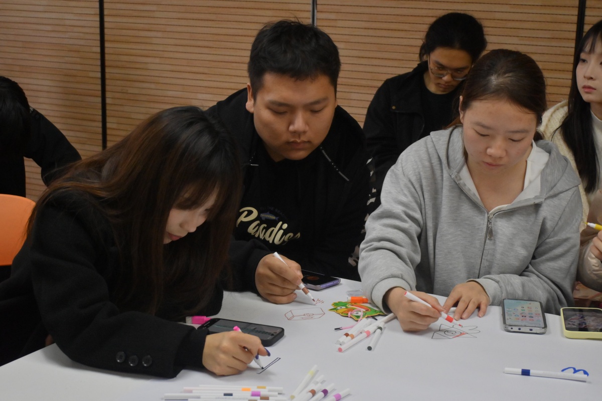 活动现场布置独具匠心,以“理性消费”为核心主题,设有“模拟拍卖区”与“创意绘画区”两大互动区域。拍卖区设置木质展台与竞价物牌,陈列着标注“原价/心理价位”的模拟商品;绘画区铺设长卷与马克笔,准备好“双十一”购物元素贴纸与绘画工具。各小组组建“拍卖师助理”与“艺术策展人”角色,王馨芳负责拍卖品解说与竞价记录,从商品估值到色彩搭配,都让同学们在协作中感悟消费理性与创意表达的平衡。