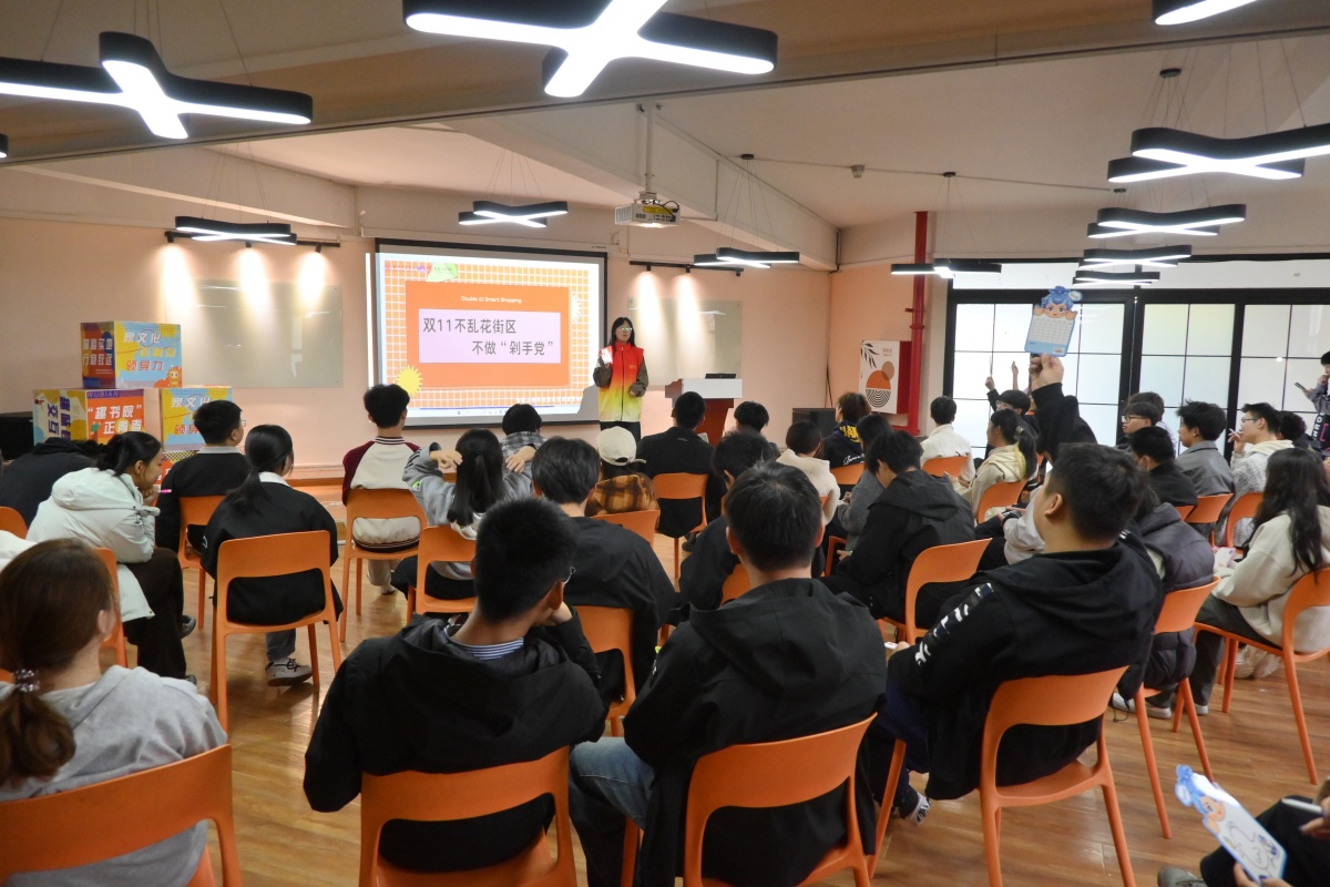 将抽象的消费观转化为可触摸的体验,是本次活动的创新所在。通过模拟拍卖会让同学们亲历消费决策的博弈过程,借助艺术创作将理性消费理念可视化,这种‘实践+表达’的模式,使教育效果更持久深刻。本次“双11不乱花街区”活动紧密贴合时代热点与学生需求,采用寓教于乐的形式,使同学们在轻松愉悦的氛围中学习消费知识、提升理财能力。
