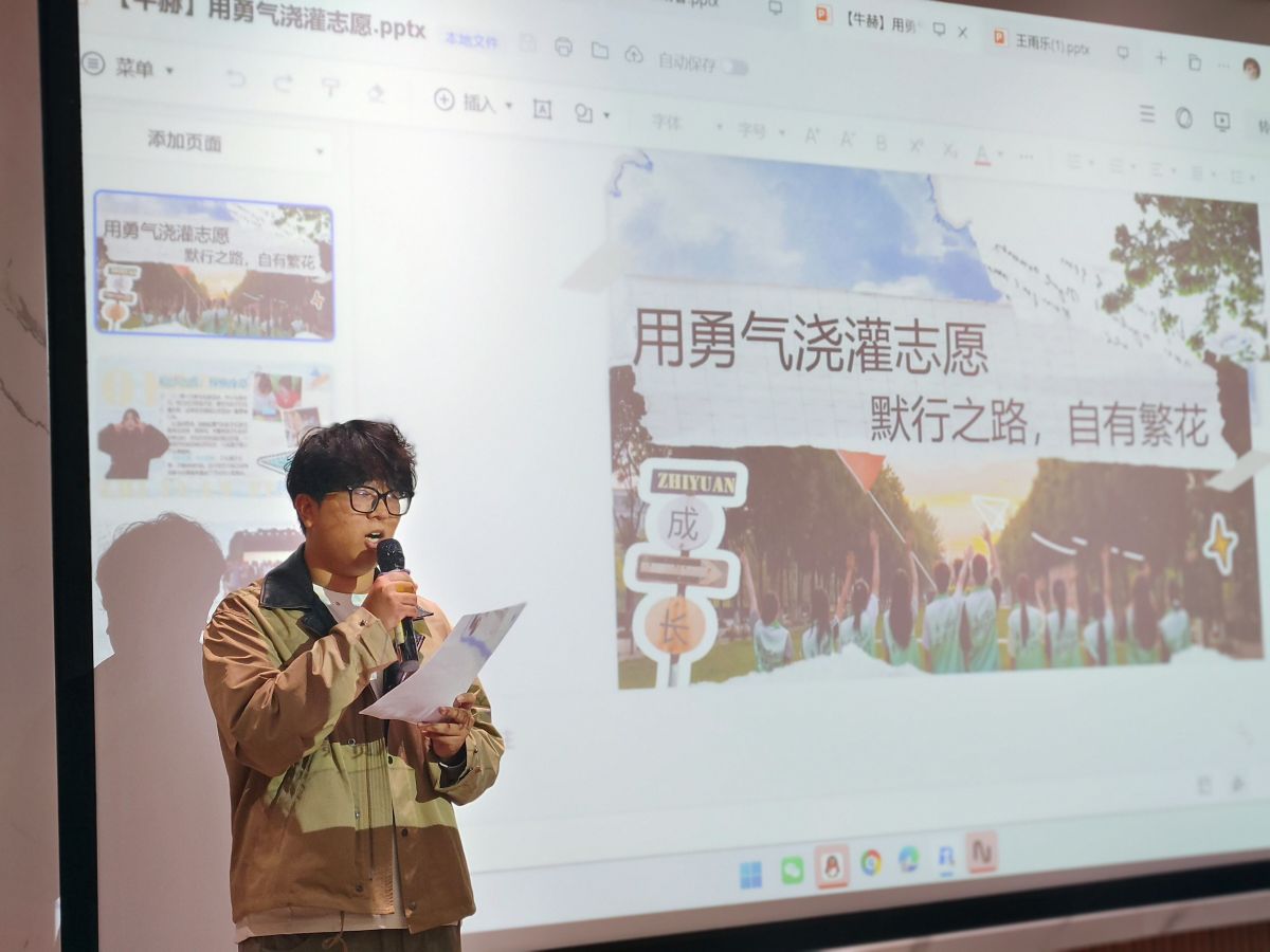 范栩睿学长首先分享他的成长历程,以“得之坦然,失之淡然,争之必然,顺其自然”结尾;牛赫学姐以“非知之难,行之惟难”为座右铭,开启志愿之旅。组织筹备10场活动,参与多场志愿国赛,这一过程中,有顺利时的并肩欢歌,也有碰壁后的携手破局,更有闯关后的满心滚烫,她以“前路漫漫亦灿灿,此程并肩亦灼灼”来激励学员把“小事”做细,把“长期”做稳;此外,王雨乐学姐则以沟通为切入点,介绍沟通的价值。学长学姐们的分享,既是个人成长足迹的真诚复盘,更是青马精神的生动传递。