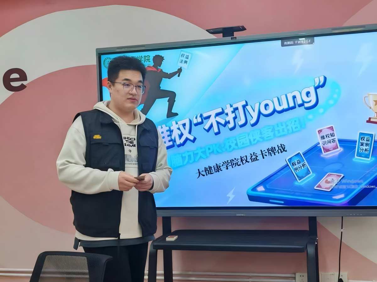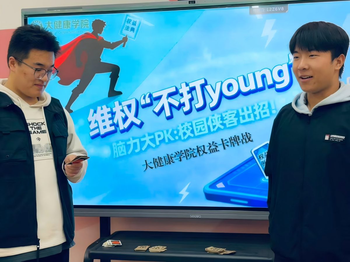当权益保护遇上趣味竞技,当青春校园碰撞智慧博弈,一场别开生面的维权知识普及活动在杏花书院热力上演。11月14日,大健康学院权益部主办的“脑力大PK:校园侠客出招!”权益卡牌战如期举行,参与活动的同学们以组为战,在轻松比拼中解锁维权技能,筑牢权益保护防线。