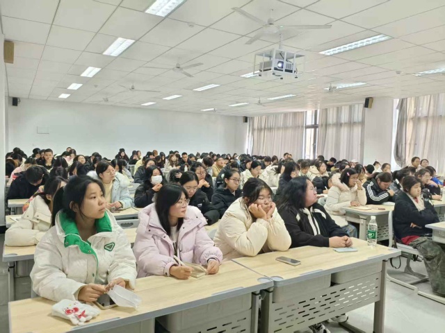 讲座环节中,张老师以“全局视角+专项突破”为逻辑主线,层层递进拆解备考关键。她先从四六级考试整体架构切入,清晰梳理各题型考查重点与分值分布,特别点透听力与阅读的“共性训练逻辑”、写作与翻译的“协同提升路径”,帮同学们跳出“单点刷题”的局限,搭建起系统化复习框架。