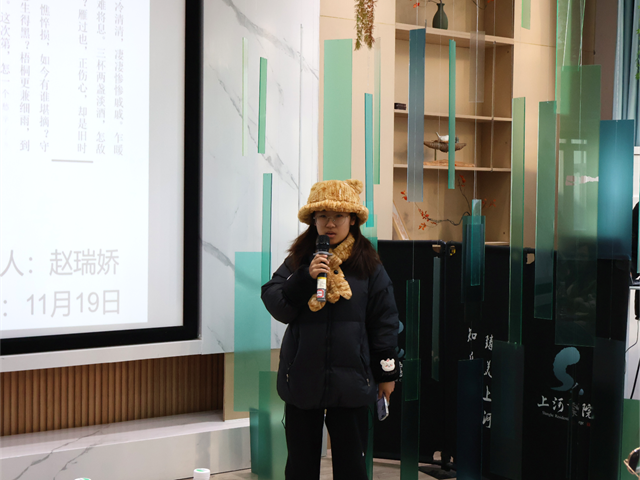 “我从小就对宋词感兴趣,喜欢了解许多宋词相关的知识,而这次的活动给了我一个学习交流的平台,在这次活动中我通过同学们的讲解学到了很多知识,也对不同宋词背后的渊源有了更深入的了解,这对我来说是巨大的收获。”