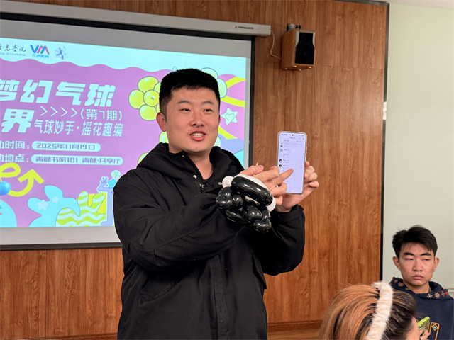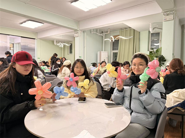 活动接近尾声,全体参与者在工作人员的组织下,手持亲手编织的气球手摇花和小奖品,围成圆圈,在温暖的灯光下定格下一张充满青春活力的合影。不少同学仍舍不得放下手中的作品,一路与同伴交流编织技巧,脸上满是成就感与满足感。“我们希望能为学业繁忙的同学们,开辟一个放松身心、激发创意的角落。”活动负责人表示,“气球编织不仅锻炼动手能力和创新思维,更是一个结交同好的美好契机,期待能与更多同学一起,用手工艺术点亮平凡的日常,装点我们的校园生活。”