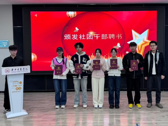 接着,新一届社团干部聘任仪式正式开始。新当选的社长、副社长及各部门干部依次登台领聘,指导老师为其颁发聘书并寄语:“聘书是荣誉,更是责任。望诸位坚守初心,发挥表率作用。”这既是对新一届干部的信任,更寄托着对社团未来发展的殷切期盼。