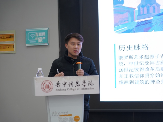 典礼临近结束时,学院校外项目导师、优秀校友王奕鑫老师带来“俄罗斯艺术鉴赏”主题分享。他以文学与视觉艺术的叙事表达为切入点,深入阐释俄罗斯艺术中“苦难与救赎”的人文内核,并通过与西方写实主义的对比,从创作理念、表现手法等维度展开解读,为师生拓宽了文化视野、提升了艺术格局。互动环节中,金融2504班石榕同学提出“孤独坚持与收获认可”的困惑,王奕鑫老师结合自身经历回应:“曾为达成创作目标,我三个月全心投入完成五部作品,销量突破两百万册。成功从来离不开日积月累的沉淀,时间终将回馈每一份执着。”