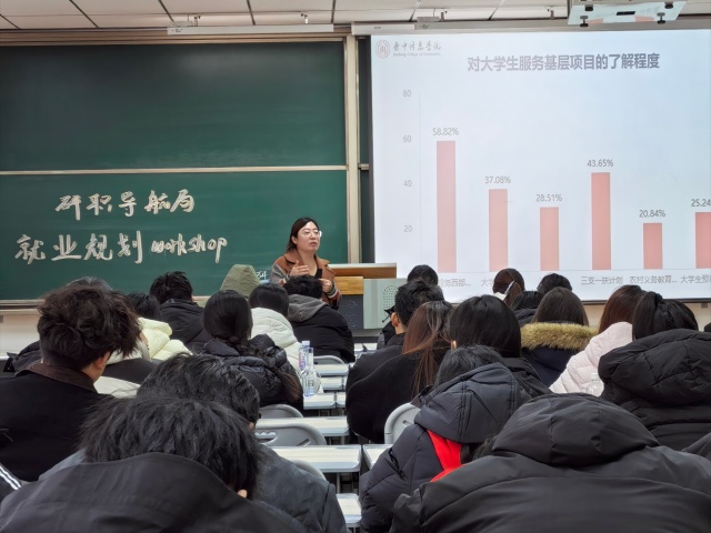 本次活动以“精准赋能、破解迷茫”为目标,依托王园老师深耕就业指导领域多年的经验积累,紧扣当下经济形势与就业动态,从宏观视角切入,解析行业趋势与市场需求。王老师强调,职业规划的本质是立足自身优势与市场契合点的长远布局,而非简单的选项抉择。其分享聚焦“复合型人才”培养理念,呼应新时代对人才的综合素质要求,为参与同学明确了能力提升的核心方向。通过打破对职业领域的认知局限,引导学生树立“自我认知+市场需求”双维度的规划思维,活动有效填补了信息不对称带来的困惑,助力学生构建系统化的职业认知体系。