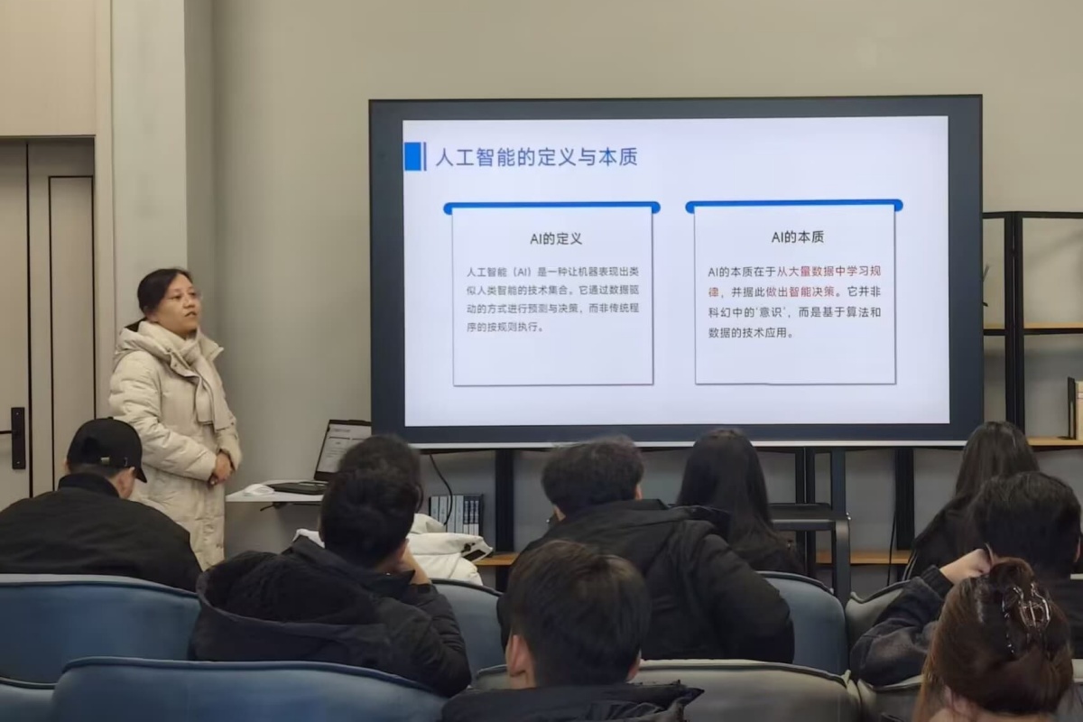 讲座伊始,安燕霞副教授以“人工智能技术应用”为主题,从“什么是人工智能”的基础概念切入,结合生动案例为同学们梳理了人工智能的定义、本质与技术基础。她指出,人工智能并非遥不可及的“黑科技”,而是通过图像识别、语音识别、自然语言处理等技术,让机器具备“感知、理解、决策”能力的系统性工程。