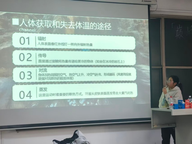 科学穿搭,乐享山野。科学穿搭不仅是户外时尚,更是安全守护。12月10日下午,一场以“步享山野·穿搭指南”为主题的户外徒步专业穿搭讲座,在晋中信息学院6教306室生动开展。本次活动由观云登山社举办,旨在通过专业知识的普及,帮助学生掌握山野环境下的合理着装方式,规避因穿搭不当引发的安全隐患。