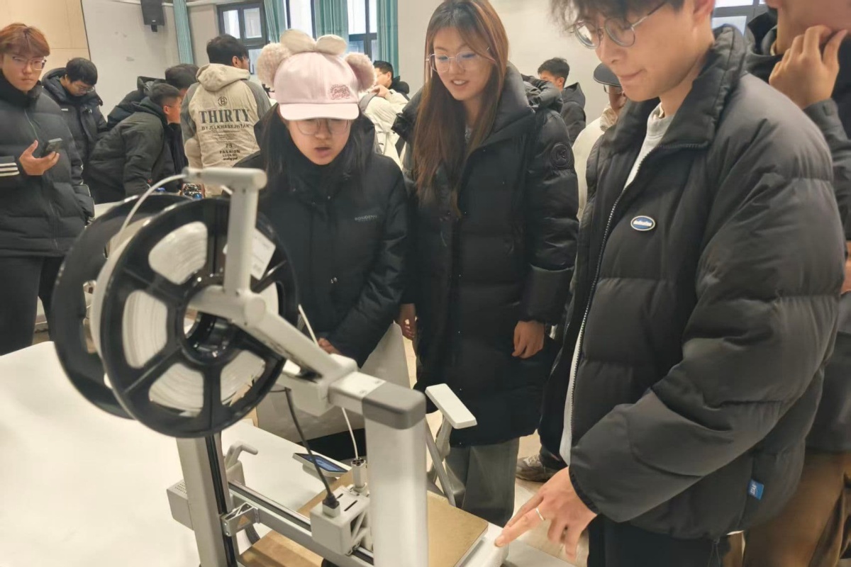 阅读灵感分享区则呈现出另一番热闹的景象。同学们围坐在一起,阅读《AI未来进行时》中关于人工智能、未来科技的经典篇目并有所感悟。有从“人生算法”中获得了机器人行为逻辑设计的新思路,提出将“人性决策模型”融入编程;有在“星际园丁”的启发下,构思出农业机器人的创新应用场景。这些从文学作品中迸发的创意,成为技术实操区的创意源泉。“原来科幻小说里的想象,并非遥不可及,我们今天用3D技术做出的机械结构,或许就是未来科技的雏形。”参与活动的电气2503班王同学感慨地说。