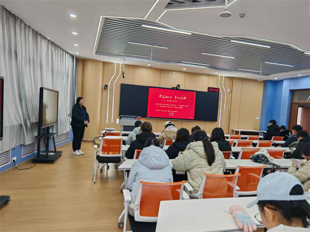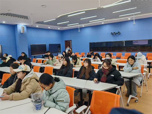 在观影前的集中讲解环节,社团成员们全神贯注,端坐静听老师对案例细节与行业安全知识的深刻剖析。现场秩序井然,学习氛围浓厚。不少同学凝神思索,提笔记录关键要点,积极与身边同伴低声交流见解,在互动交融的共学环境中,逐步构建起系统化、多维度的营销认知框架。这种理论先行、思维铺垫的方式,有效提升了后续观影的理解深度,使同学们能更敏锐地捕捉影片中隐藏的策略智慧。